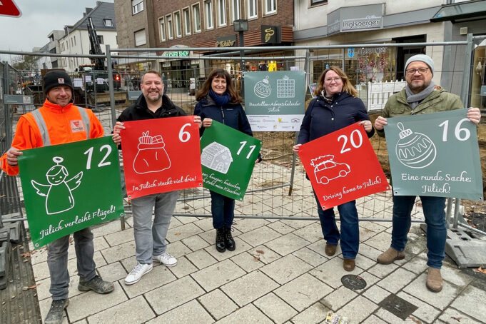 Bekanntermaßen wird in der Jülicher Kölnstraße aktuell zwischen Baier- und Poststraße reichlich gebaut. Um die Baustelle etwas attraktiver zu gestalten, organisiert das Citymanagement Jülich im Weihnachtsgeschäft mit Unterstützung der Werbegemeinschaft Jülich, der Straßengemeinschaft Kleine Rurstraße/Grünstraße, des städtischen Amts für...