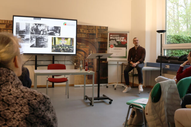 Der Vortrag fand im Zusammenhang mit dem MuseumMobil statt – ein Projekt des Hauses der Geschichte NRW, das im ganzen Bundesland persönliche Geschichten sammeln und hinterher ausstellen möchte. Vertreterin Dr. Stefanie Johnen stellte in Bezug auf die Grußreden von Timur Bozkır als stellvertretendem Landrat und Karl Philipp Gawel als Vertreter für Bürgermeister Axel Fuchs sowie Claudia Schotte als VHS-Leiterin und Jülicher Geschichtsverein klar: Es gebe jede Menge Geschichtsbereiche, wie in den an diesem Abend vorangegangenen Beispielen die Forschung, Braunkohle, Wirtschafts-, Römer- oder Migrationsgeschichte, die das Land geprägt hätten und zu denen es etwas zu erzählen gebe, was im MuseumMobil Platz finden könne. Objekte, die in ihrer Ganzheit oder in bestimmten Aspekten betrachtet werden könnten und ganz wesentlich erzählten, wie sich das Land Nordrhein-Westfalen entwickelt habe. Sie freue sich über jede Gabe.
