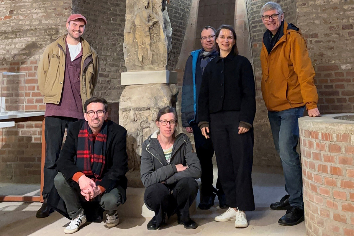 Sophie Merz und Tobie Verleye von merz merz architekten und Guido von Büren, Jacek Grubba, Marcell Perse und Christina Vieth vom Museum Zitadelle Jülich im Schlosskeller der Zitadelle. Foto: Museum Zitadelle Jülich 2026