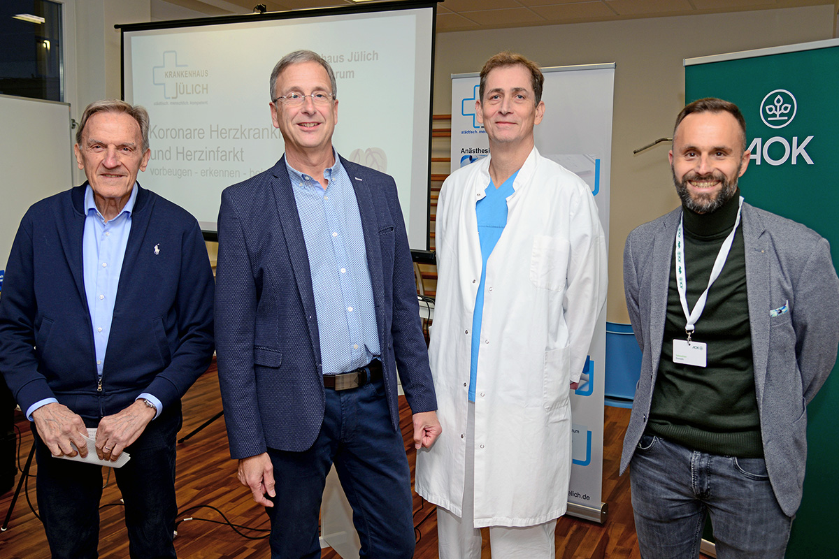 „Gesunde Gefäße, gesundes Herz“, war der Titel des Patientenforums, bei dem sich zu den üblichen Gastgebern der Gesundheitsstunde, dem Krankenhaus Jülich und der AOK, noch die Deutsche Herzstiftung gesellte. Als deren regionaler Vertreter stellte Jürgen Braun die Arbeit der Herzstiftung kurz vor, zu der neben der Förderung von Forschungsprojekten vor allem die Information der Bevölkerung gehört. „Wir leben in einer Wohlstandsgesellschaft. Und auch wenn das erst einmal ein großes Glück ist, ist es für die Gesundheit unserer Herzen ein Problem“, sagte Braun.