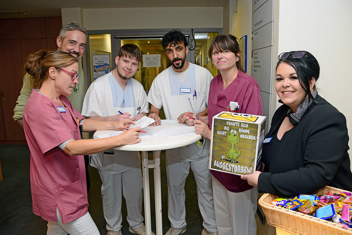 Den ersten Schnupfennasen sind wir alle schon begegnet, und auch das Husten nimmt links und rechts von uns wieder zu. Die Erkältungszeit hat begonnen. Für das Krankenhaus Jülich war das der Anlass, einen zweiten Tag der Händehygiene in diesem Jahr zu organisieren. Mitarbeiter, Patienten und Besucher sollten darüber informiert werden, warum es gerade jetzt so wichtig ist, bei der Händehygiene keine Kompromisse zu machen.