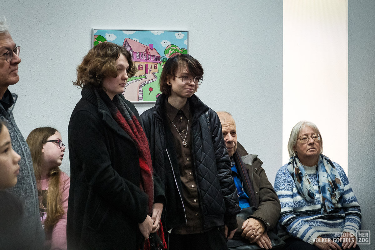 Die Jury bestand aus der georgischen Künstlerin und Illustratorin Sopio Kiknavelidze, der Malerin und Bildhauerin Beatrix von Bock, der Künstlerin und Wissenschaftlerin Simone Wiegand, dem Schatzmeister im Vorstand des Kunstvereins Jülich Gerold Malß sowie dem Mitinitiator des Wettbewerbs und Jugendvertreter des Kunstvereins Leon Jovanovic. Die Gewinnerinnen der drei Hauptpreise wurden schon im Oktober gekürt und erhielten ihre Preise, die aus hochwertigen Grafiktabletts bestanden. Anwesend war auch Jens Olschewski, der stellvertretende Vorsitzende der Bürgerstiftung Düren, der sich positiv über die Aktion äußerte und sie gerne unterstützt hat.