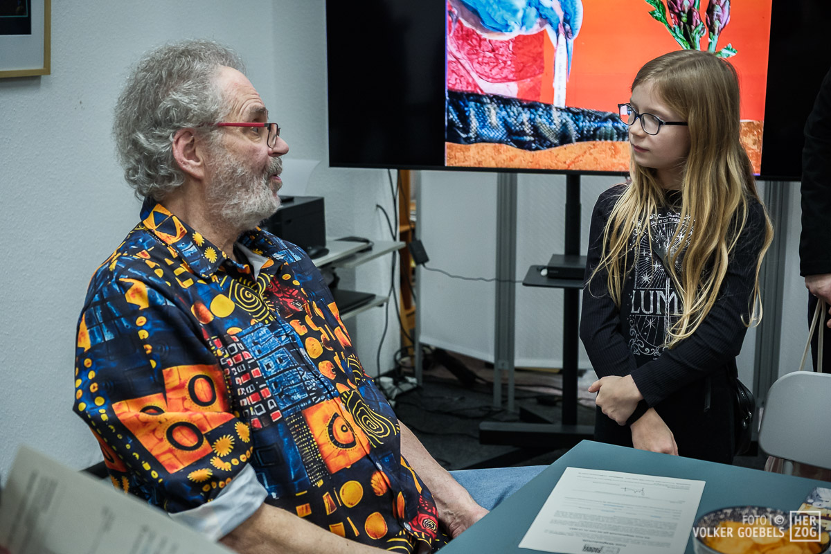 Da niemand leer ausgehen sollte, wurden alle zu einer Feier in die Kultur-Werkstatt eingeladen. Die 13 digitalen Arbeiten wurden vorher von der Druckerei Prost ausgedruckt und anschließend im Atelier von Gerold Malß gerahmt, um sie schließlich an den Galeriewänden der Kultur-Werkstatt für die Öffentlichkeit auszustellen. Ausstellung und Feier machte der Kreis Düren möglich, über den der Kunstvereinsich die Teilnahme am NRW-weiten Förderprogramm „2000 x 1000 Euro für ihr Engagement“ sichern konnte.