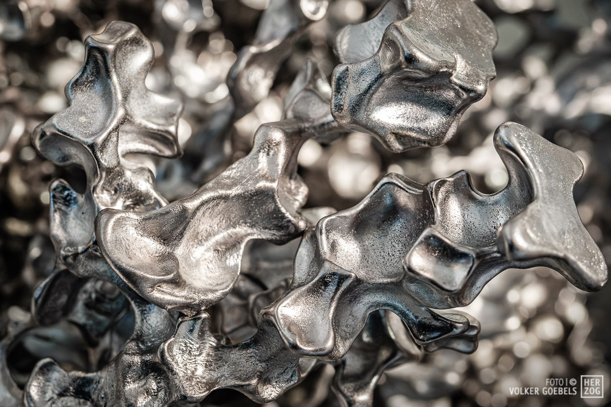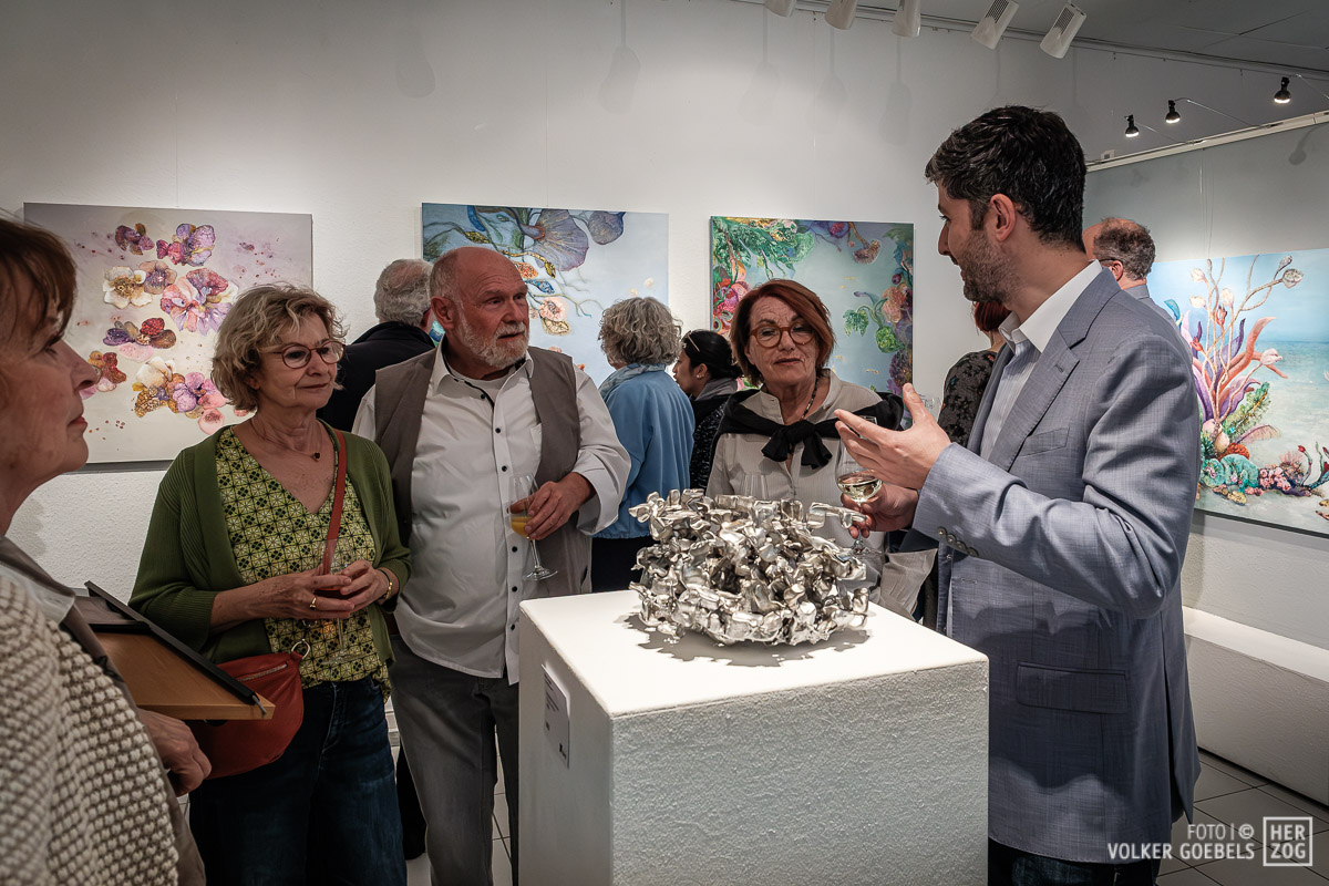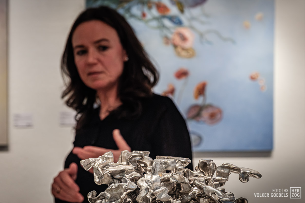 Überraschende Parallelen fand die Kunsthistorikern zwischen den so unterschiedlichen Werken von Ena Rutten und Max Engels, die schon im verwendeten Material deutlich voneinander abweichen. Aber dennoch: Die „Ästhetisierung von wenig Beachtetem und von negativ Behaftetem“ fand sie in den Plastiken von Engels ebenso wieder wie bei Ruttens fast schon ätherischen Pflanzenkompositionen. In jedem Fall haben die Galeristen ein interessantes Duo in ihre Röume eingeladen, deren Werke einen spannenden Konstrast bieten – und damit ganz unterschiedliche Sehgewohnheiten und Publikumsgeschmäcker bedienen.