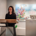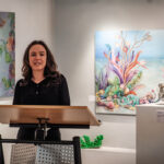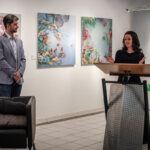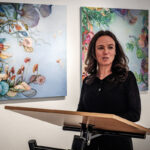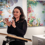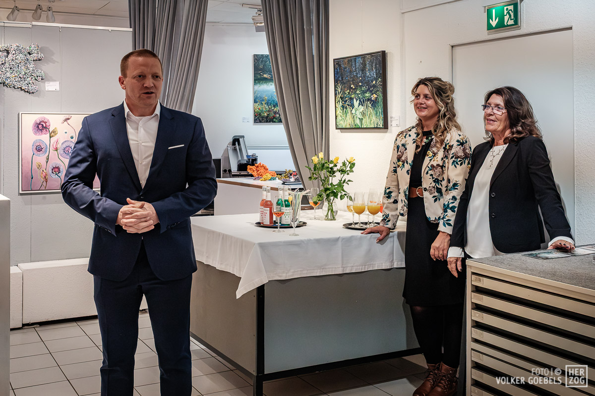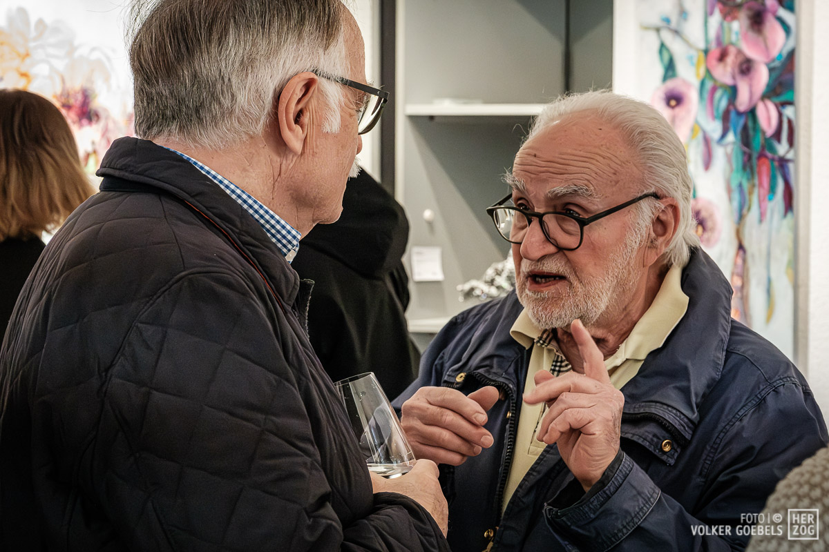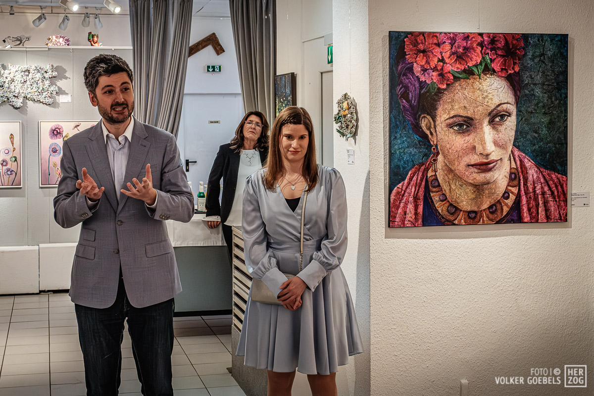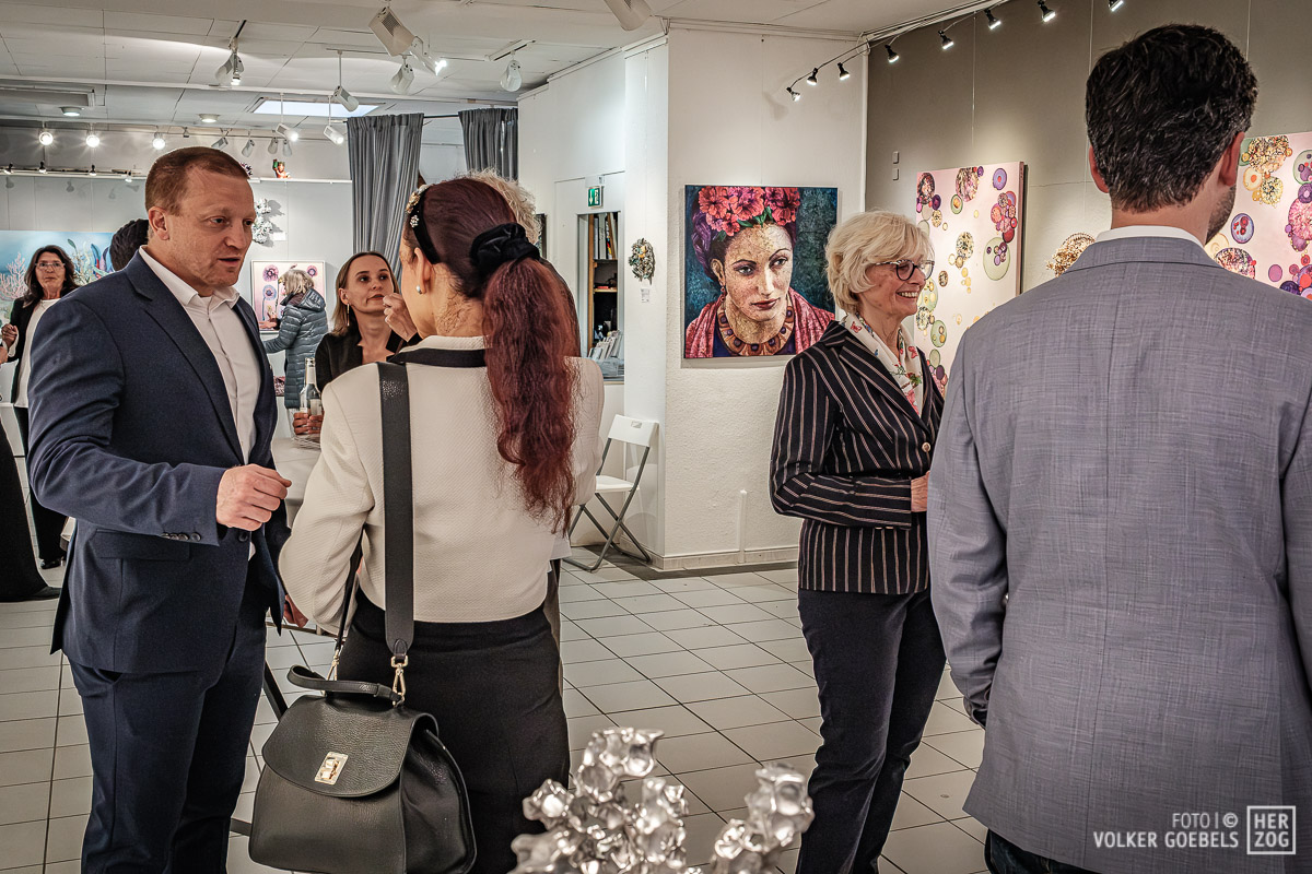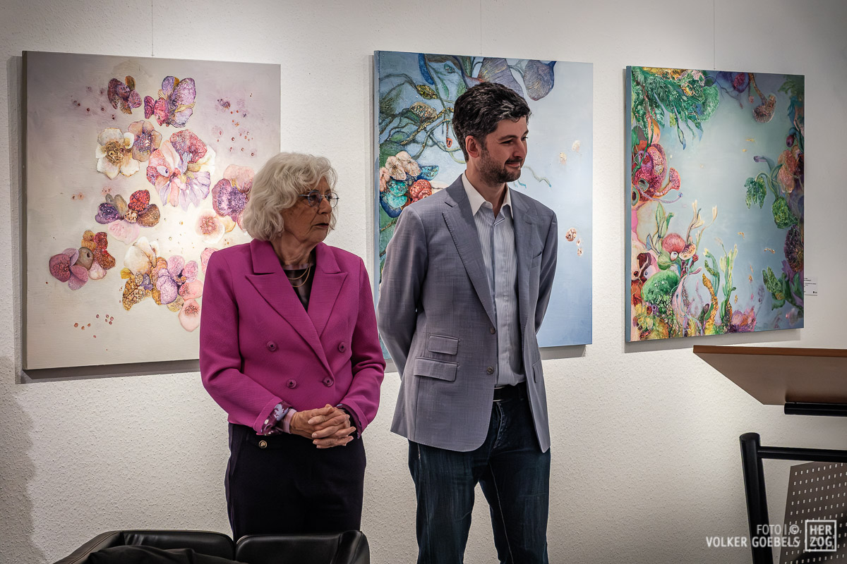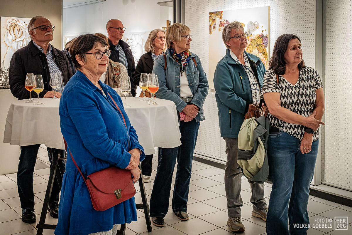 Die Galerie An der Zitadelle präsentiert Ruttens Malerei in Kombination mit Plastiken von Max Engels. Alexandra Simon-Tönges hat die Künstler und ihre Werke anlässlich der Vernissage vorgestellt. Bemerkenswert sei der abwechslungsreiche kompositorische Aufbau der Gemälde von Rutten, so die Kunsthistorikerin. „Der Fokus liegt teils auf ungewöhnlichen Stellen im Bild, dennoch erzeugt Ena immer eine sehr vielschichtige, zugleich dynamische und harmonische Bildordnung. Vielleicht ist es genau das, was ihre Arbeiten so lebendig macht: Sie wirken nicht konstruiert, sondern gewachsen“, überlegte Simon-Tönges in ihren einführenden Worten.
