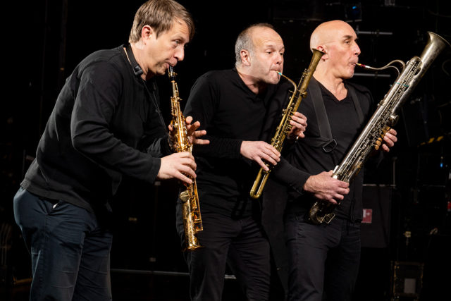 Genau ein Jahrhundert später präsentiert das Trio Lézard sein Programm „Le Tango des Fratellini“ mit Musik aus dem Paris der 1920er- und 1930er-Jahre. Und wie im „Boeuf“ steht auch hier „klassische“ Kammermusik gleichberechtigt neben Tango und Chanson. Aber nicht nur die Musik dieser schillernden Zeit erweckt das Ensemble zu neuem Leben, sondern auch die Instrumente: Sarrusophone, die längst vergessen geglaubten Cousins der Saxophone, lassen mit den Tangos der 1920er-Jahre diese Welt vor den Augen und Ohren der Konzertbesucher wieder auferstehen. Nachdem es mehr als 100 Jahre geschwiegen hat, gibt ihm das Trio Lézard seine Stimme zurück: dem Sarrusophon. Dieses faszinierende Holzblasinstrument aus Metall ist um 1850 in Paris erfunden worden und hat den gleichen Ursprung wie das Saxophon. Das Sarrusophon gibt es, wie auch das Saxophon, in allen Stimmlagen, vom Sopranino bis zum Kontrabass. Klanglich beeindruckt es mit der Eleganz der Oboe, der Kraft des Saxophons und der Virtuosität der Querflöte.
