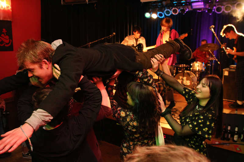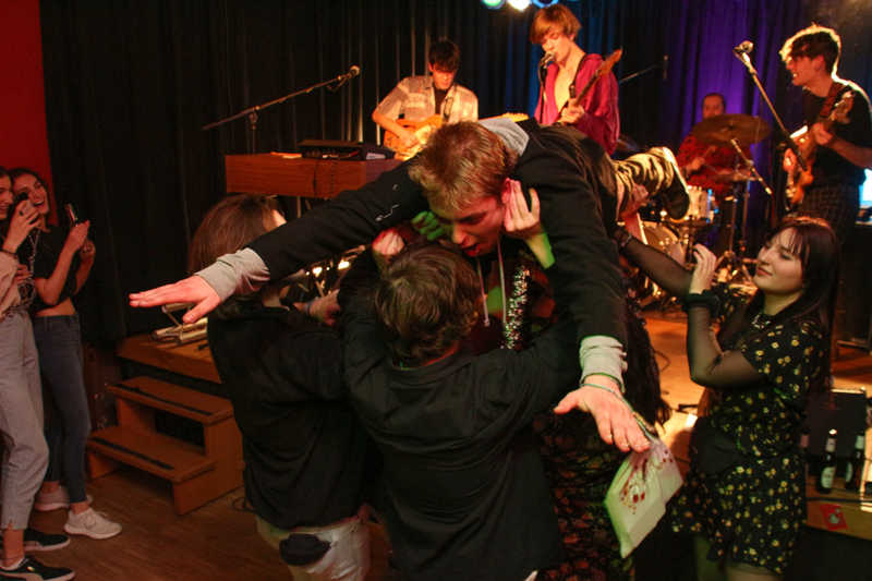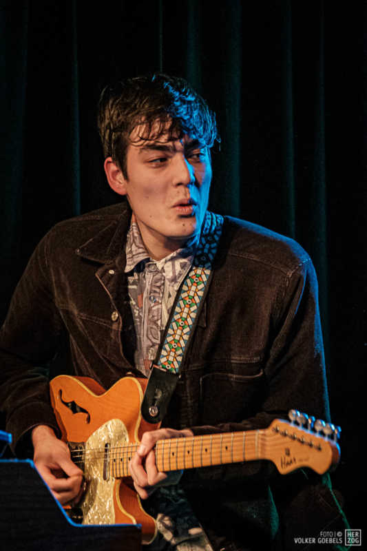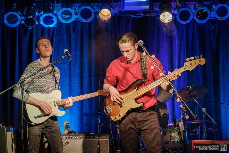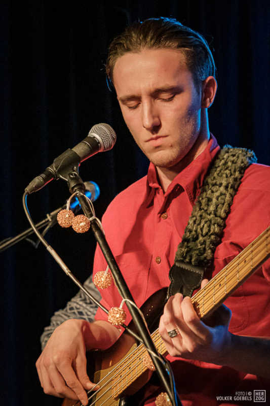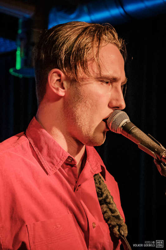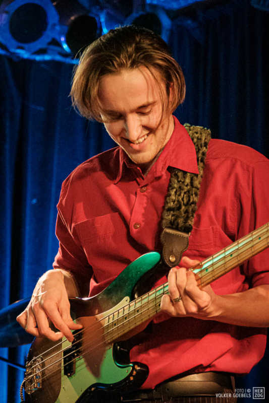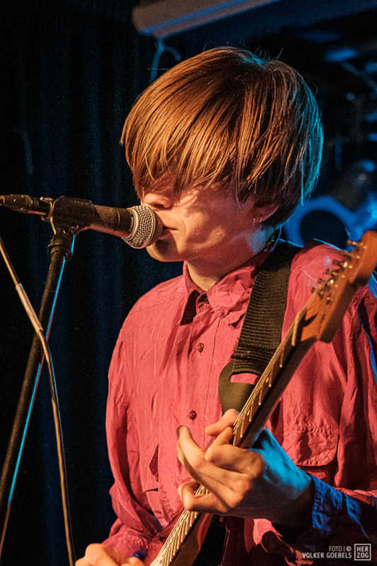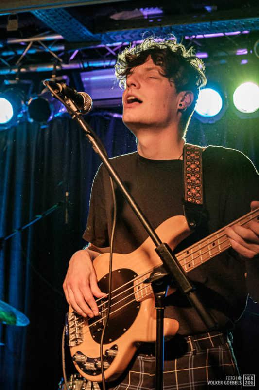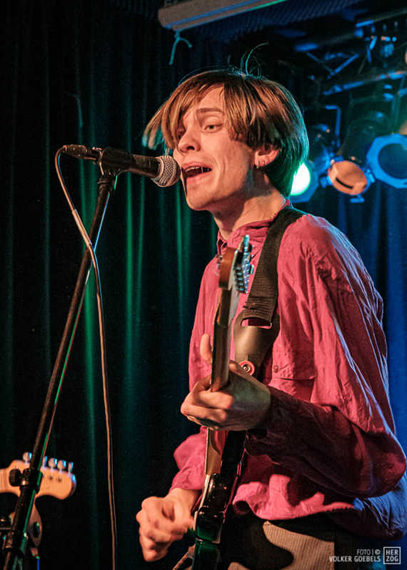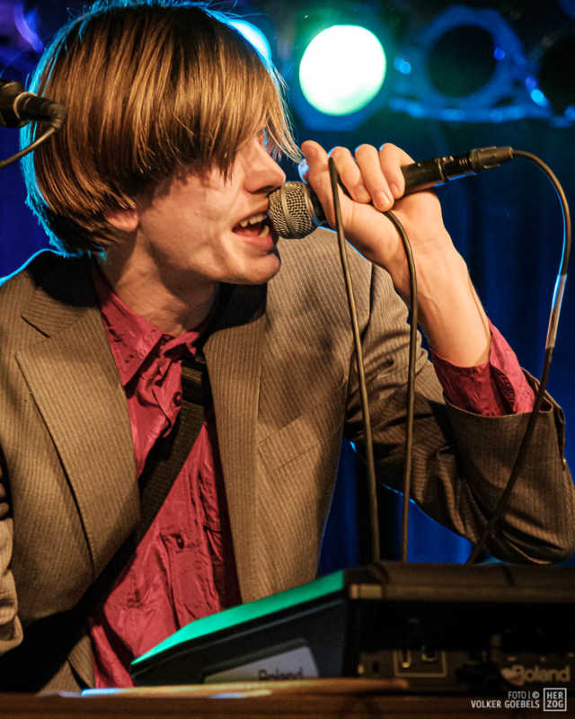 Action ist angesagt, die Band mag nicht ruhig bleiben, und da offenbar auch viele Zuhörer nicht wissen, wohin mit der erzeugten Energie, setzen sie diese halt in rhythmische Bewegungen auf der Tanzfläche um. Power-Pop, Surf und Garage heißt die Gangrichtung laut Info, dabei setzen die Vier bei „Sly smiled Berlin child“ voll auf wildes ungestümes 60ies-Flair. Da schütteln nicht nur Floris und Bassist Simon ihre halblangen Wuschelhaare.