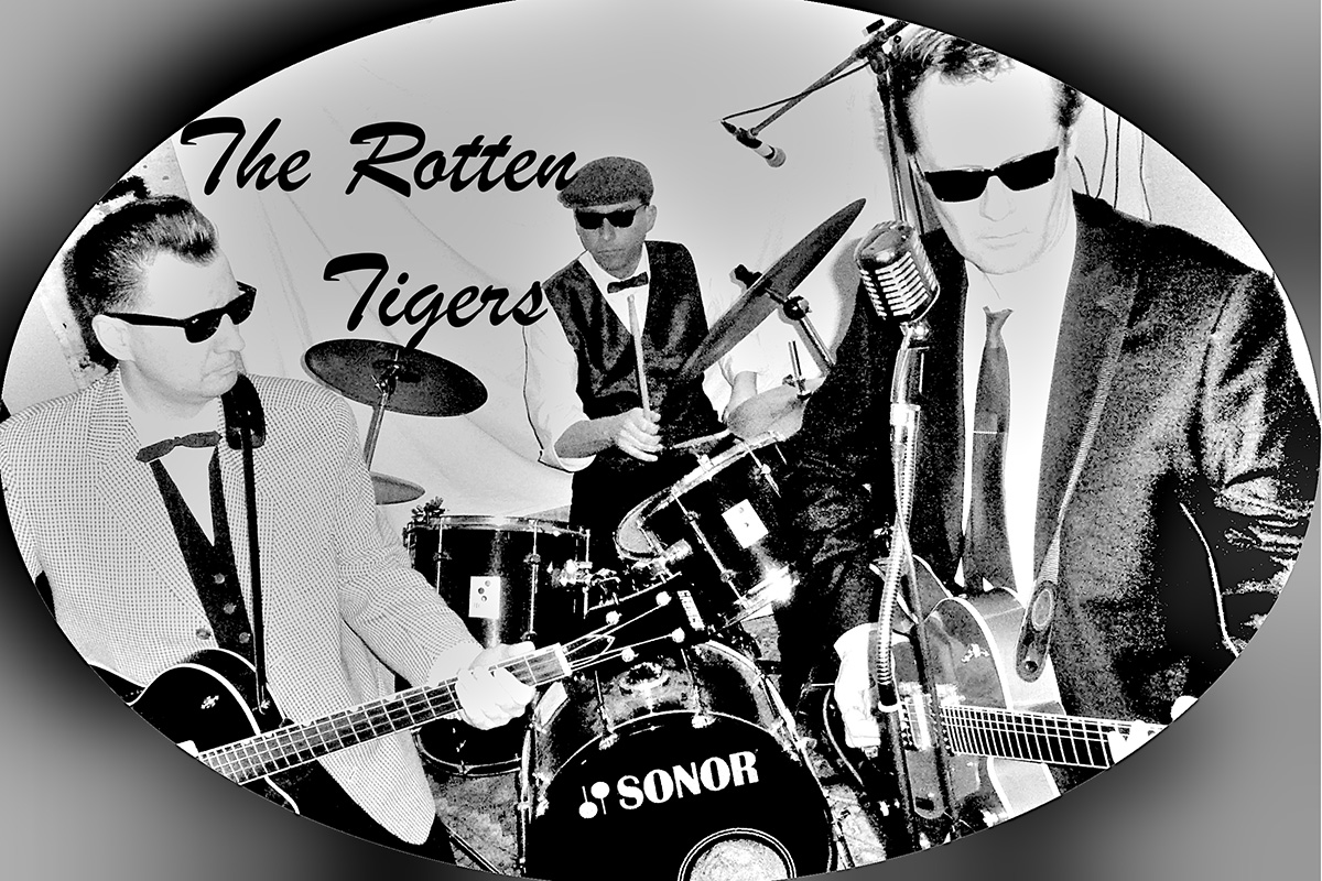 „The Rotten Tigers“ Coverband feiert 60-jähriges Jubiläum. Eigentlich müsste die Band „Wir wüssten ja nicht, was wir freitagsabends machen sollten“ heißen – ist aber wenig glaubwürdig. So coverten sich Berthold Peters (Gitarre), Erich Gussen (Schlagzeug), Christoph Uerlichs (Bass) seit vielen Jahren durch die Musik der 80er wöchentlich im Proberaum. Regelmäßige Auftritte waren selten, und so wurde immer mal wieder bei privaten Feiern oder besonderen Anlässen gespielt. Wer also Lust auf Gutes aus der Zeitkapsel hat, dem sei dieser Abend ans Herz gelegt.