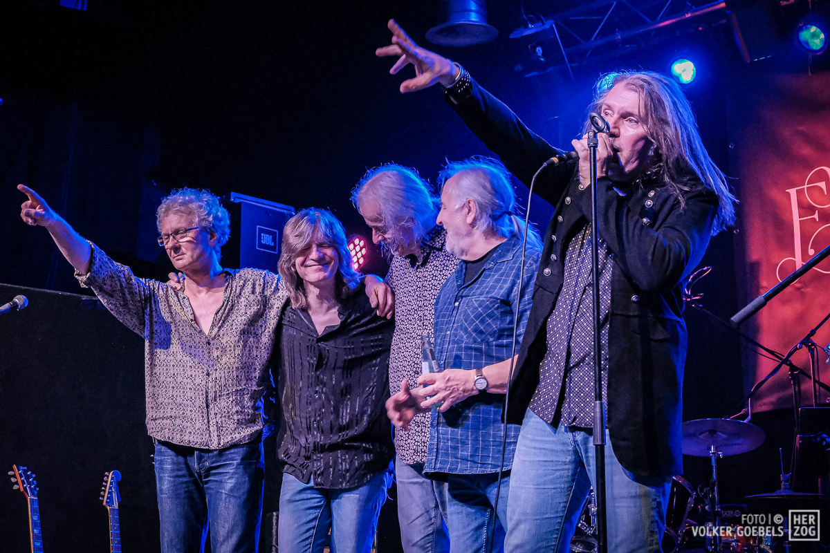 Mit einem tollen Konzert haben „Flying Circus“ im Jülicher Kulturbahnhof jetzt ihr neues Album präsentiert und gleichzeitig einen Abschied gefeiert respektive feiern müssen. Bassist Roger Weitz legt den Viersaiter aus der Hand und setzt sich selbst zur Ruhe. Im Kuba hat er es allerdings gemeinsam mit seinen Bandkollegen noch einmal so richtig krachen lassen.