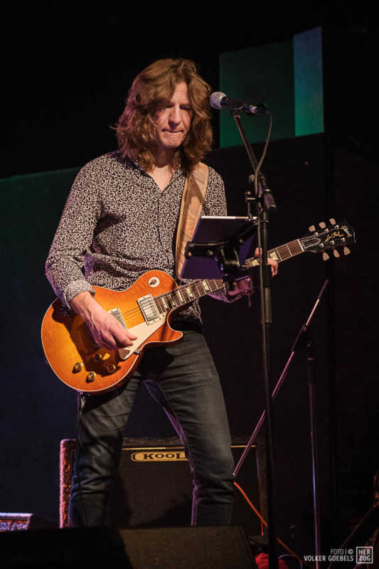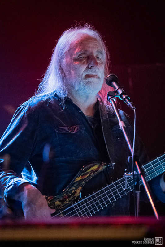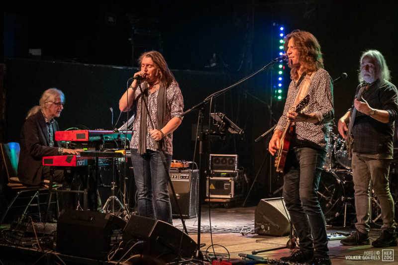 Selbst bei geschlossenen Augen breitete sich die ganze Dynamik des Opus‘ aus, Drummer Ande Roderigo und Bassist Roger Weitz sorgten auch bei ruhigen Passagen für den nötigen Druck, Keyboarder Rüdiger Blömer holte die dazugehörigen Sounds aus den Tasten, während Gitarrist Michael Rick die fetten elektrischen Bratklänge genauso wie die sanften akustischen Zwischentöne einstreute.
