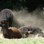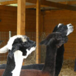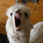 In Düren auf der Annakirmes gibt es ja das traditionelle Kirschkernweitspucken. In Jülich ist das ein wenig anders. Die Jülicher Bürger spucken nicht selbst, sie lassen spucken. Reinhold beantwortet gern Fragen zu den Alpakas und eine typische Frage der Kinder und Erwachsenen ist: „Spucken die?“ Also die Großkamele sind sich eher zu fein dazu, sie spucken nur selten,aber die Lamas und Alpakas sehr wohl. Reinhold erklärt: „Alpakas haben verschiedene Arten des Spuckens. Zuerst mal ist das Spucken eine Möglichkeit der ranghöheren Tiere, den rangniedrigeren mitzuteilen, dass sie stören. Das Problem ist der Futterneid. Wenn Besucher ein ranghöheres Tier füttern und ein rangniedrigeres Tier dazu kommt, wird gespuckt, leider in die Richtung der Besucher.“ Reinhold ergänzt: „Man kann das Spucken der Alpakas mit dem Knurren von Hunden vergleichen. Die Botschaft ist jeweils: „Geh weg!““