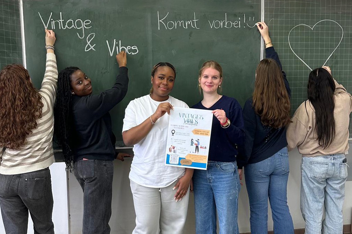 Beim Mädchen- und Frauentrödel „Vintage und Vibes“ kann jeder mitmachen, der sich über die Email-Adresse nachhaltiges-leben@gmx.de bzw. über den Instagram-Account anmeldet. Außerdem freuen sich die Organisatorinnen natürlich über zahlreiche Besucherinnen jeden Alters am 7. März ab 14:00 Uhr im Mädchengymnasium. Gewinne, die durch die Standmieten und den Verkauf von Getränken und Selbstgebackenem erwirtschaftet werden, sollen im Anschluss an den Verein „Kleine Hände“ in Jülich gespendet werden. So wird der Kreislaufgedanke um eine weitere Dimension ergänzt: der Verein unterstützt oftmals Schülerinnen in Not und so können die Mädchen einen Teil dazu beitragen. Das Projekt zeigt damit eindrucksvoll, wie Schülerinnen mit Teamgeist eigenverantwortlich planen, organisieren und handeln, um dabei gleichzeitig einen Beitrag zu einer besseren Welt zu leisten.