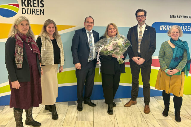 Sylvia Herschel-Beganer ergänzt seit Februar das Kollegium in der Schulaufsicht für den Kreis Düren und ist unter anderem für die sieben Förderschulen im Kreis Düren zuständig. Landrat Dr. Ralf Nolten und Constantin Mertens, der zuständige Dezernent bei der Bezirksregierung Köln, haben sie im Kreishaus begrüßt.