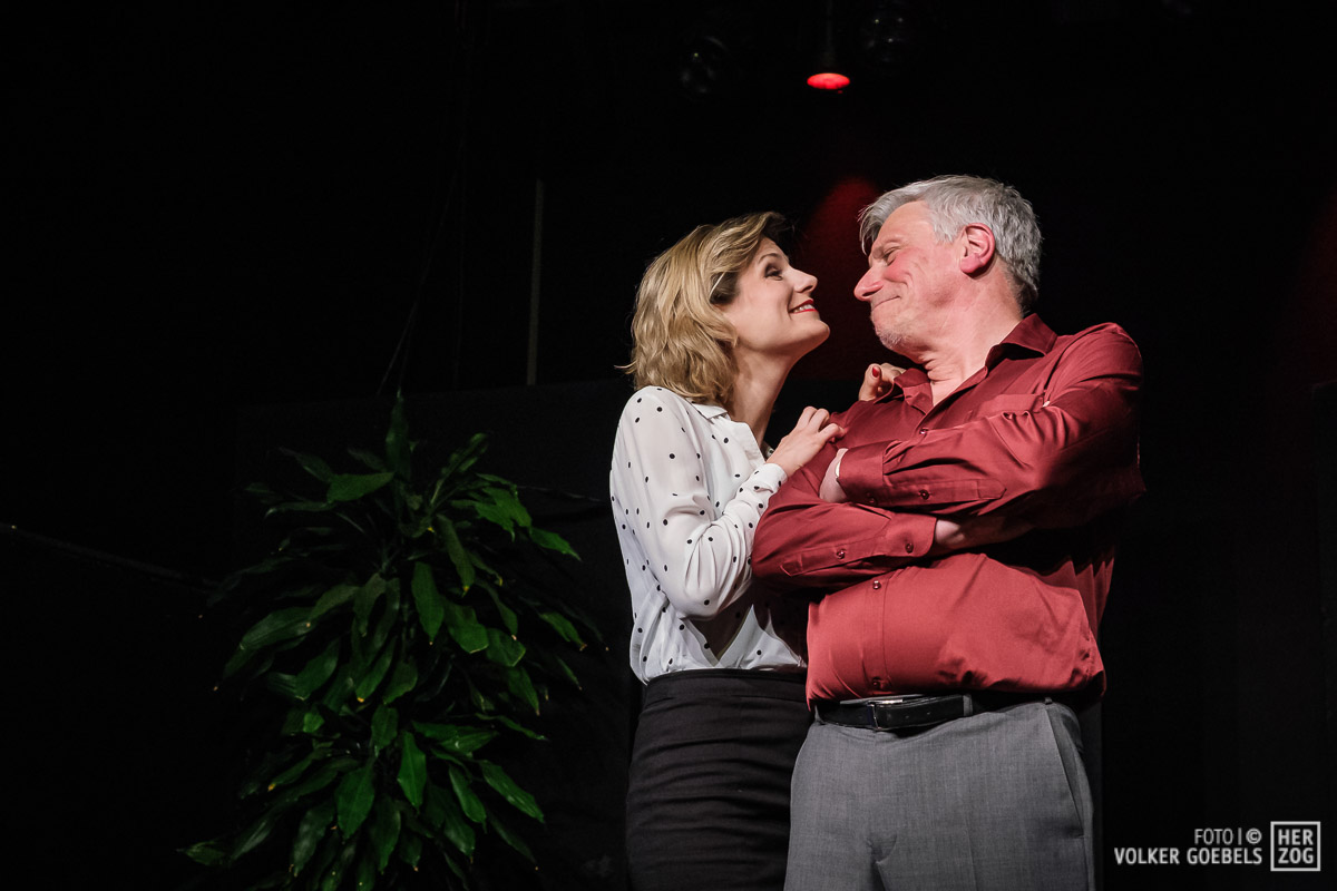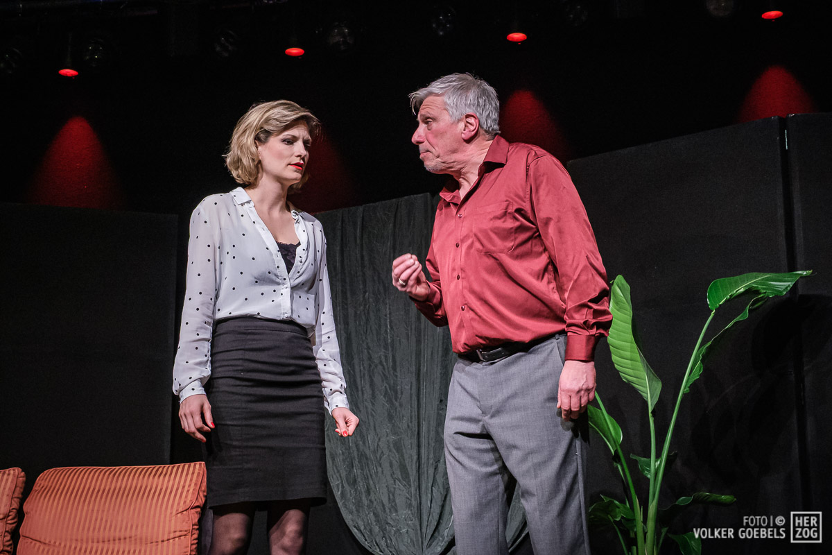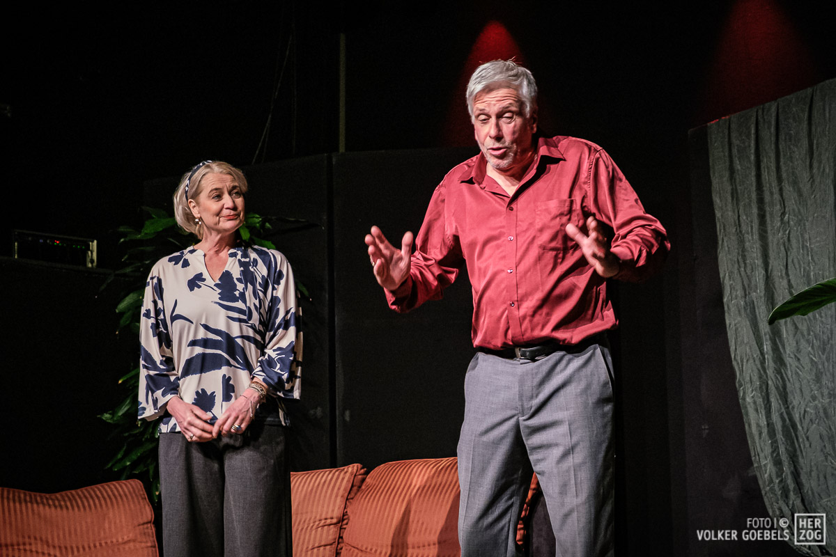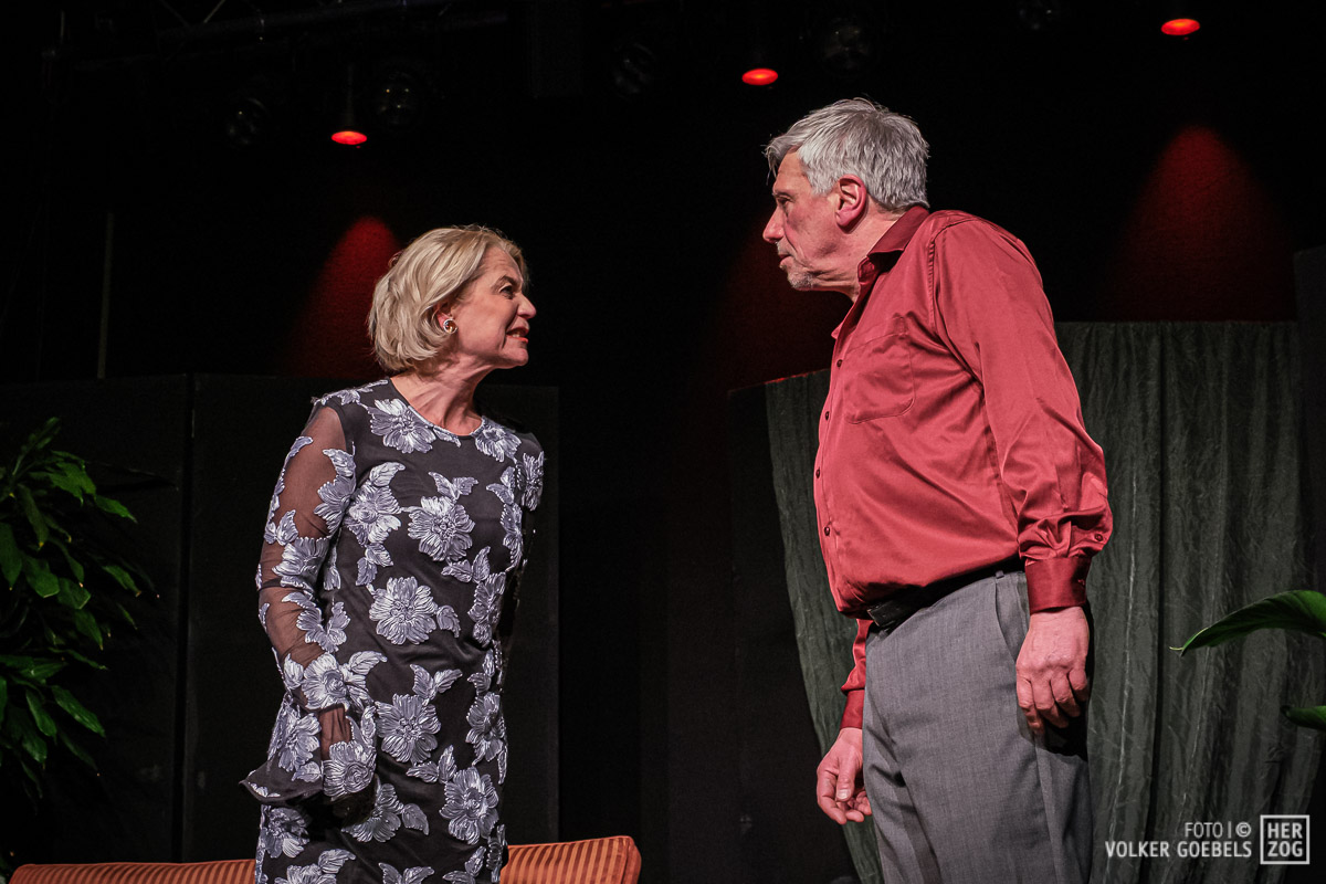 Marianne Sery hat das Stück konsequent durchinszeniert. Ernste Fragen werden dem Publikum humorvoll und manchmal auch absurd präsentiert. Stringentes Tempo, sich ständig ändernde Situationen getragen von einem ausgeglichenen Ensemble ließen das Publikum bis zum Ende in Ungewissheit über das Schicksal der Akteure. Dieter Niessen gelang es in besonderem Maße, die Verwandlung des selbstsicheren und erfolgreichen Architekten in einen von Ängsten und Selbstzweifeln geplagten Mann glaubhaft und voller Spielfreude zu verkörpern. An seiner Seite konnte Bettina Niessen mit der umgekehrten Entwicklung überzeugend brillieren. Flankiert wurde das Paar von den nicht weniger überzeugenden Sarah Aubel und Christoph Fischer. Beide wussten die wilde emotionale Achterbahnfahrt ihrer beiden Figuren authentisch zu verkörpern.