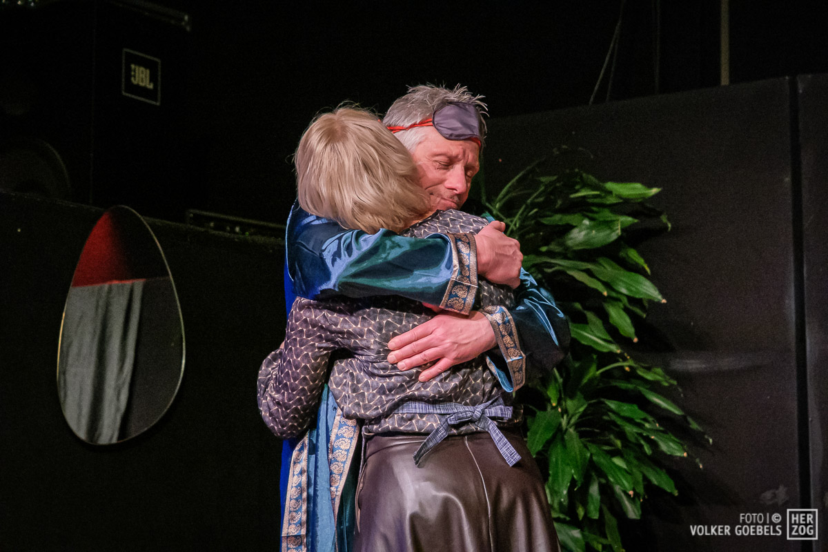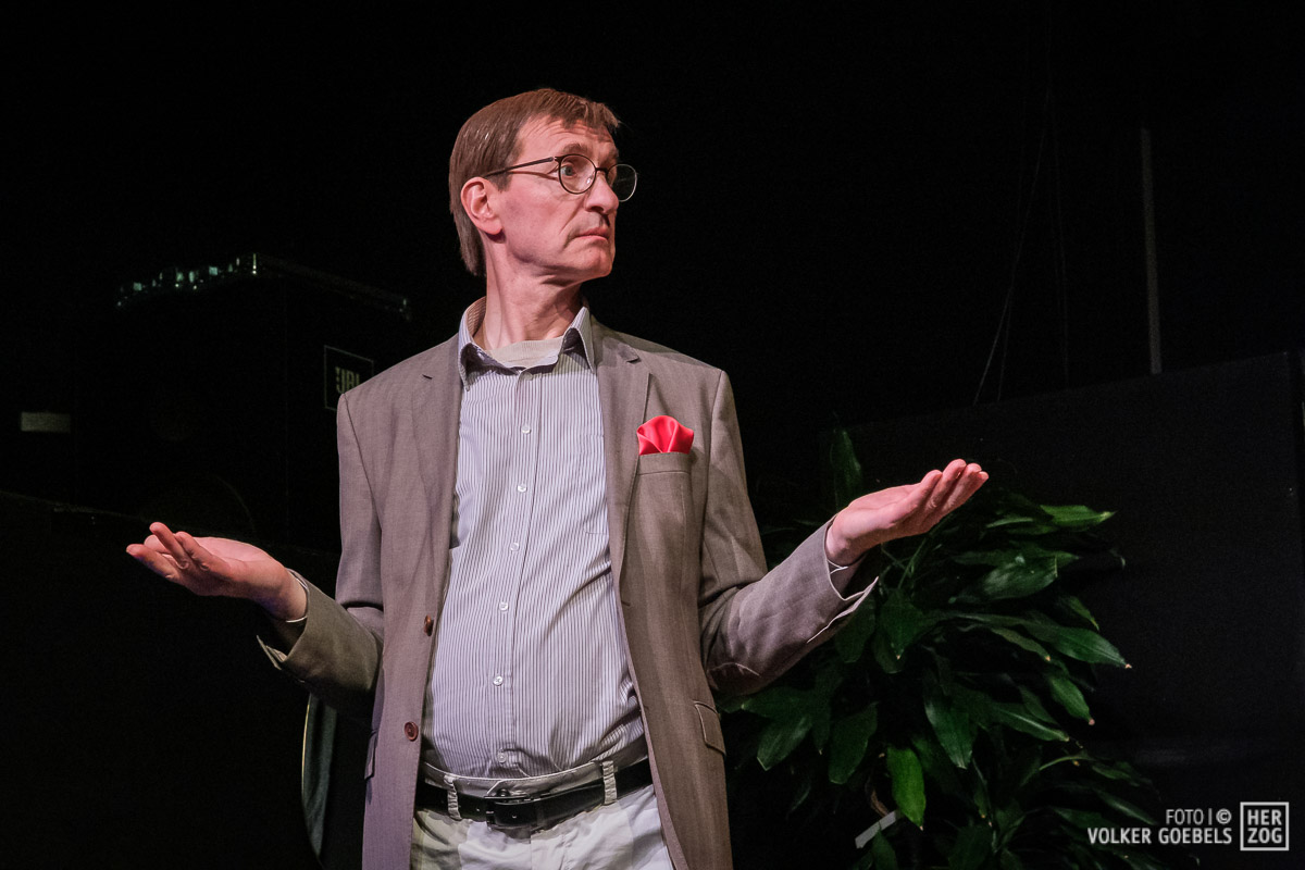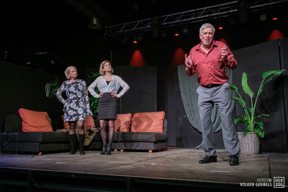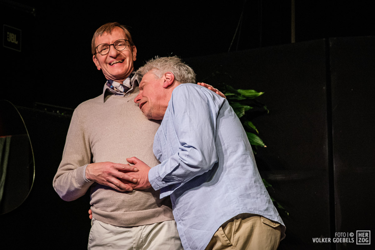 Marianne Sery hat das Stück konsequent durchinszeniert. Ernste Fragen werden dem Publikum humorvoll und manchmal auch absurd präsentiert. Stringentes Tempo, sich ständig ändernde Situationen getragen von einem ausgeglichenen Ensemble ließen das Publikum bis zum Ende in Ungewissheit über das Schicksal der Akteure. Dieter Niessen gelang es in besonderem Maße, die Verwandlung des selbstsicheren und erfolgreichen Architekten in einen von Ängsten und Selbstzweifeln geplagten Mann glaubhaft und voller Spielfreude zu verkörpern. An seiner Seite konnte Bettina Niessen mit der umgekehrten Entwicklung überzeugend brillieren. Flankiert wurde das Paar von den nicht weniger überzeugenden Sarah Aubel und Christoph Fischer. Beide wussten die wilde emotionale Achterbahnfahrt ihrer beiden Figuren authentisch zu verkörpern.