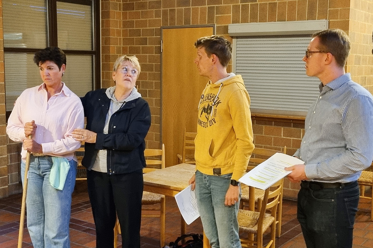 Schon in den frühen Morgenstunden kracht ein Auto in ein Juwelier Schaufenster, worauf der Motor für immer seinen Dienst quittiert. Das hatten Uwe und Günni ganz anders geplant. Was sie geplant haben, erfährt das Publikum des Laienensembles TheaterLust bei der nächsten Premiere „Der Juwelenpriester“. Denn eigentlich wollte das Diebesduo mit seiner Beute das Weite suchen, doch stattdessen sitzen sie nun fest und hätten beinahe auch noch einen Priester überfahren, den sie geschockt zurücklassen – ohne Priester-Kutte.
