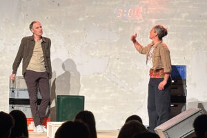 Nach der Vorstellung hatten die Schüler die Möglichkeit, Fragen zu stellen – vor allem zum Bühnendesign und zu den erzählten Geschichten. Das Stück läuft bereits seit Mai 2022 und wird von der Compagnie nik produziert. Die Regie führt Dominik Wilgenbus.