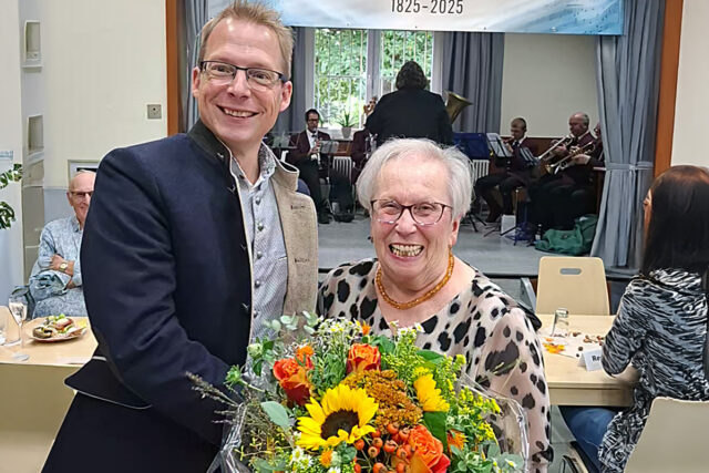 Anschließend feierten die Mitglieder des Kirchenchores mit ihren Angehörigen und Freunden und zahlreich erschienenen Gäste. Ehemalige Sängerinnen und Sänger, Vertreter der Ortsvereine, Freunde und Förderer des Kirchenchores trugen zum Gelingen des Festes bei. Die Vorsitzende des Kirchenchores, Agnes Kreutz, nahm die vielen Glückwünsche entgegen. Ein besonderer Dank ging an den Chorleiter Christof Rück.