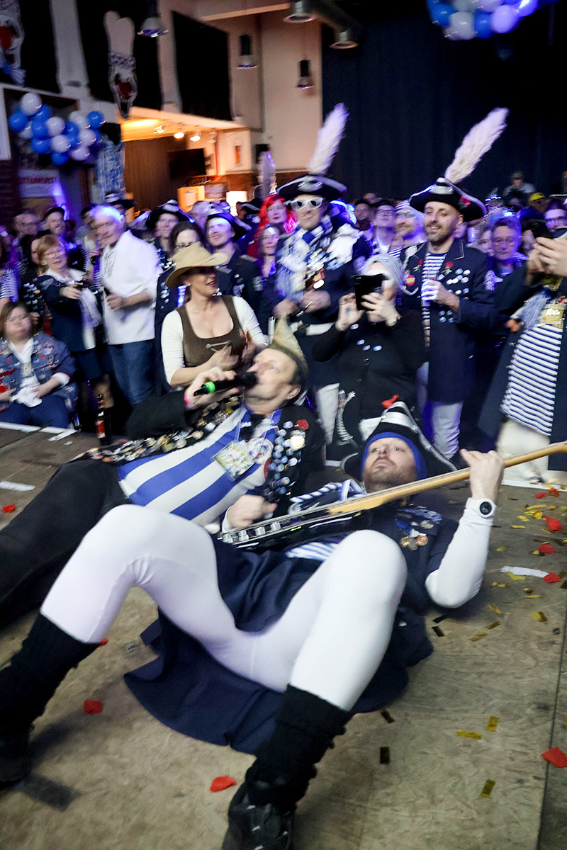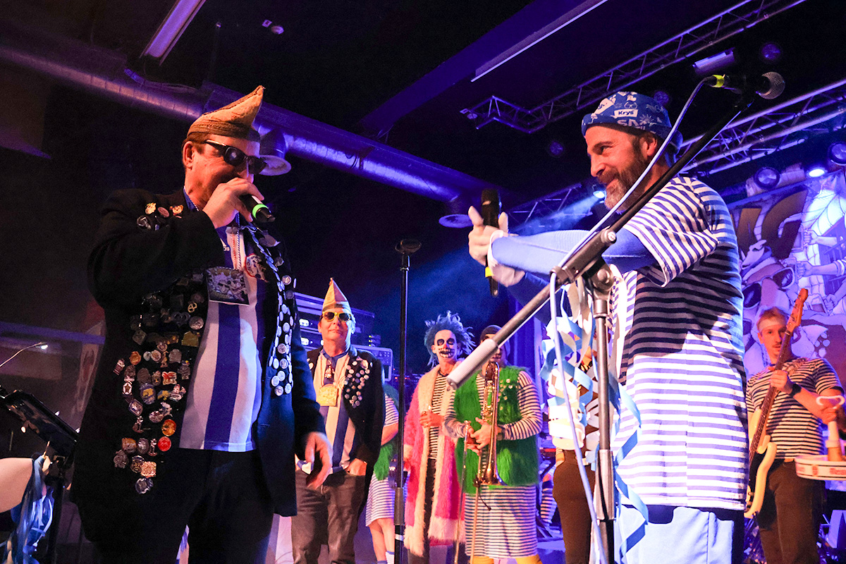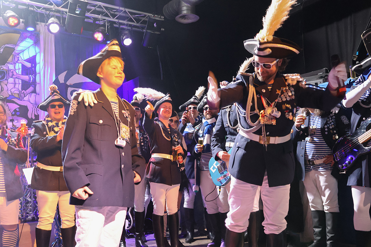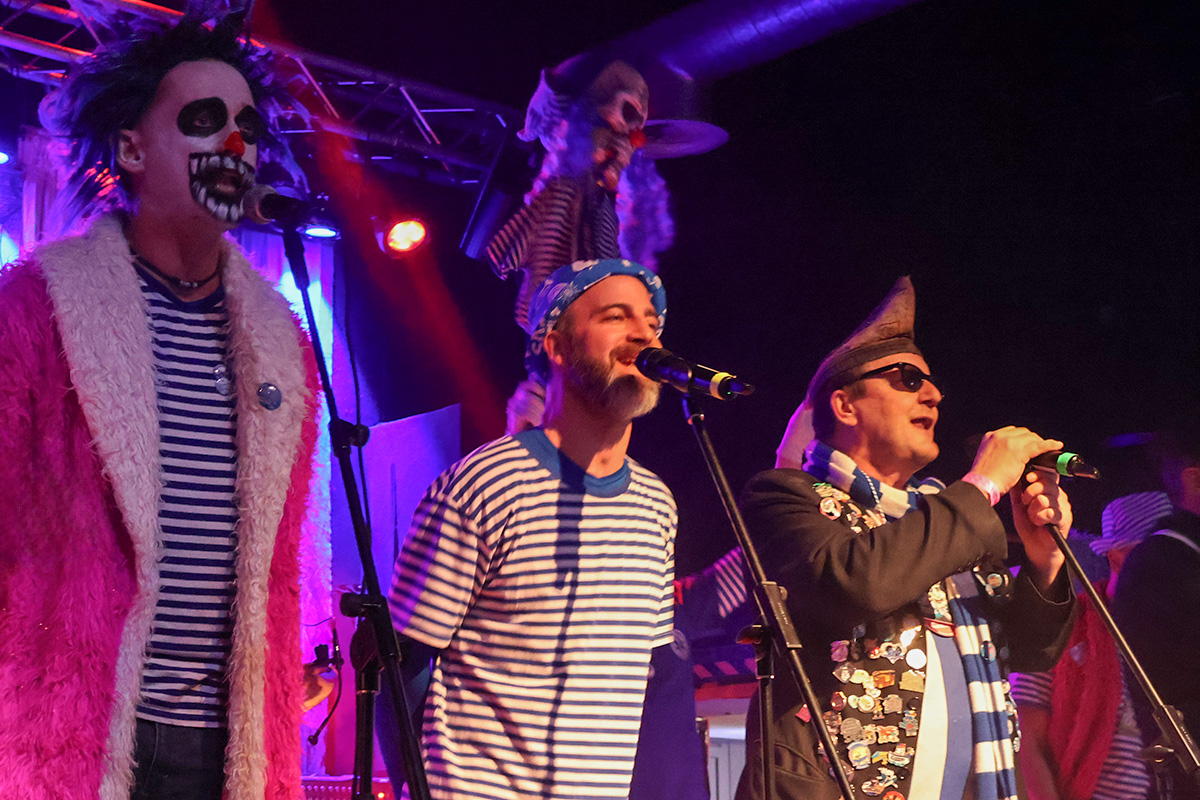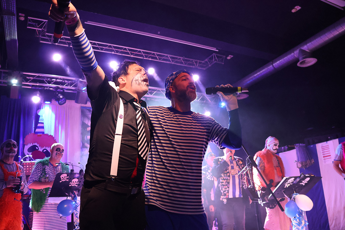 Es hat sich wohl einiges verändert. Nicht nur, dass die Präsidenten Axel Fuchs und Uwe Mock mittlerweile stimmlich von David Ningelgen und Claudio D’Orsaneo unterstützt werden, sondern auch durch steigendes Alter und außer-karnevalistische Ämter hat sich mittlerweile manche (Selbst-)Wahrnehmung verschoben. „Ist schon komisch, wenn ein Bürgermeister und ein Sozialarbeiter in der Band sind und plötzlich nicht mehr singen“, kommentierte so Mock zur Liedzeile „… ist poppen kein Problem“. Und auch überraschend: diesmal gab es im Publikum sogar Platz zum Tanzen.