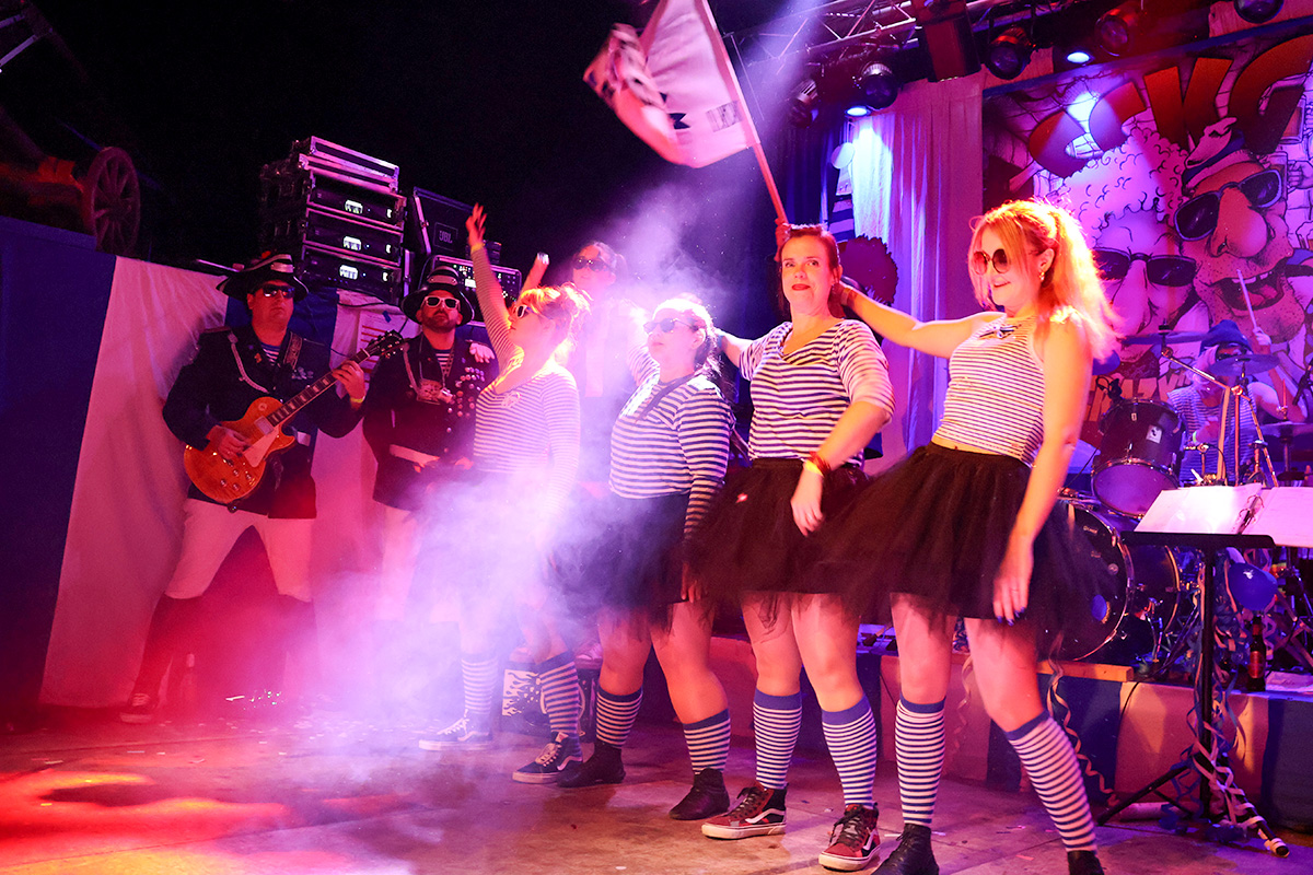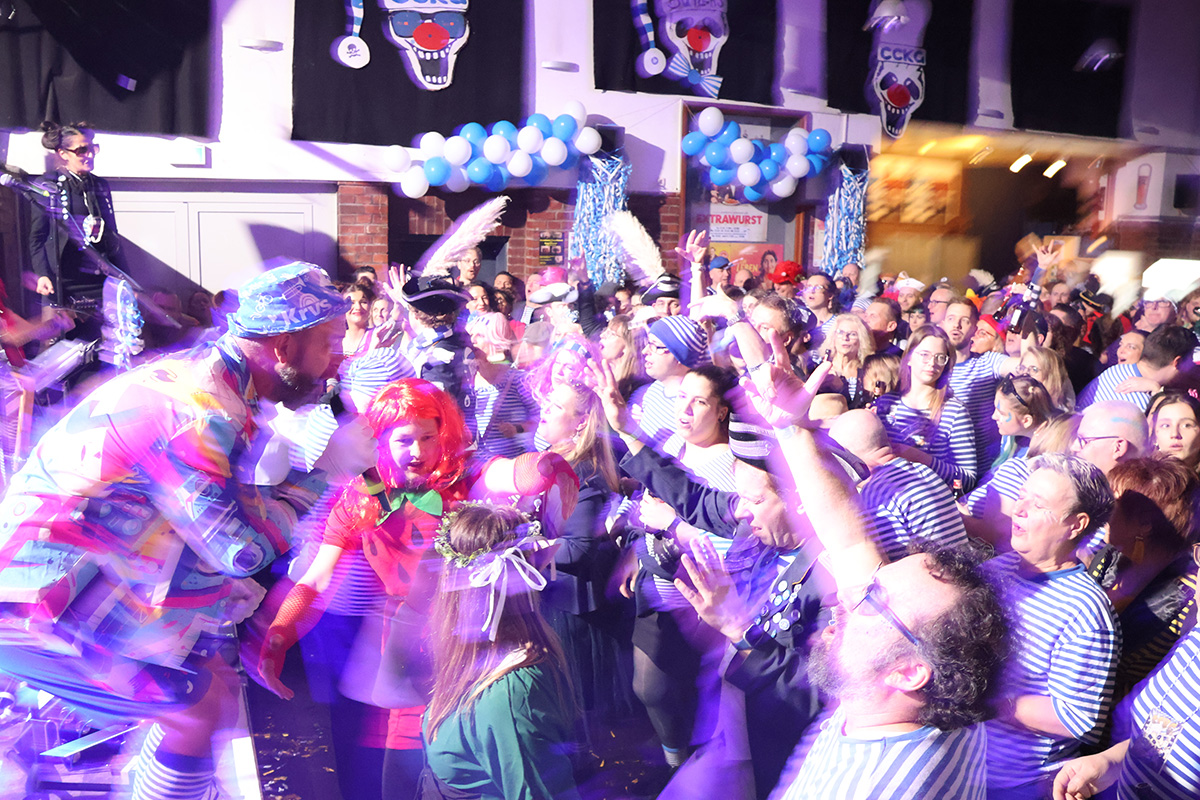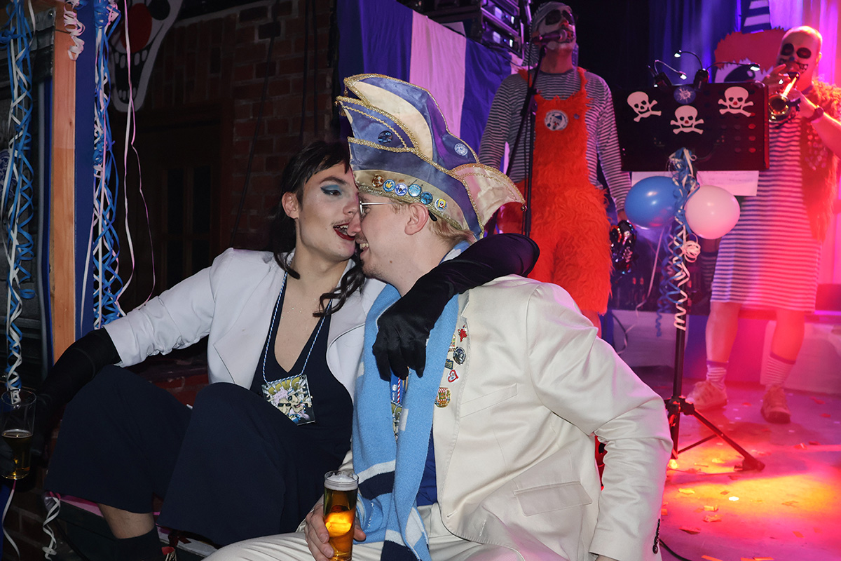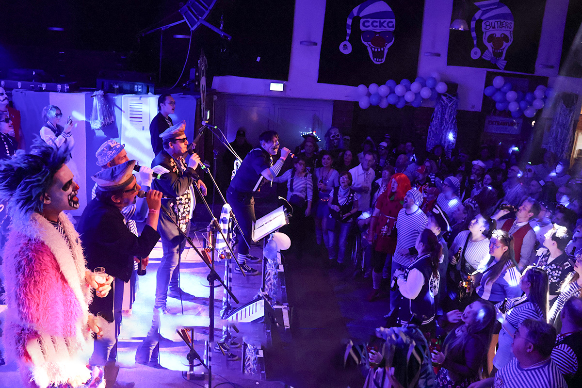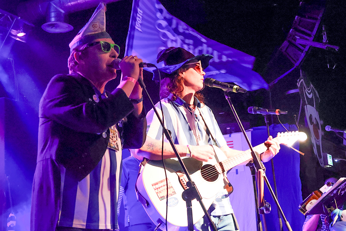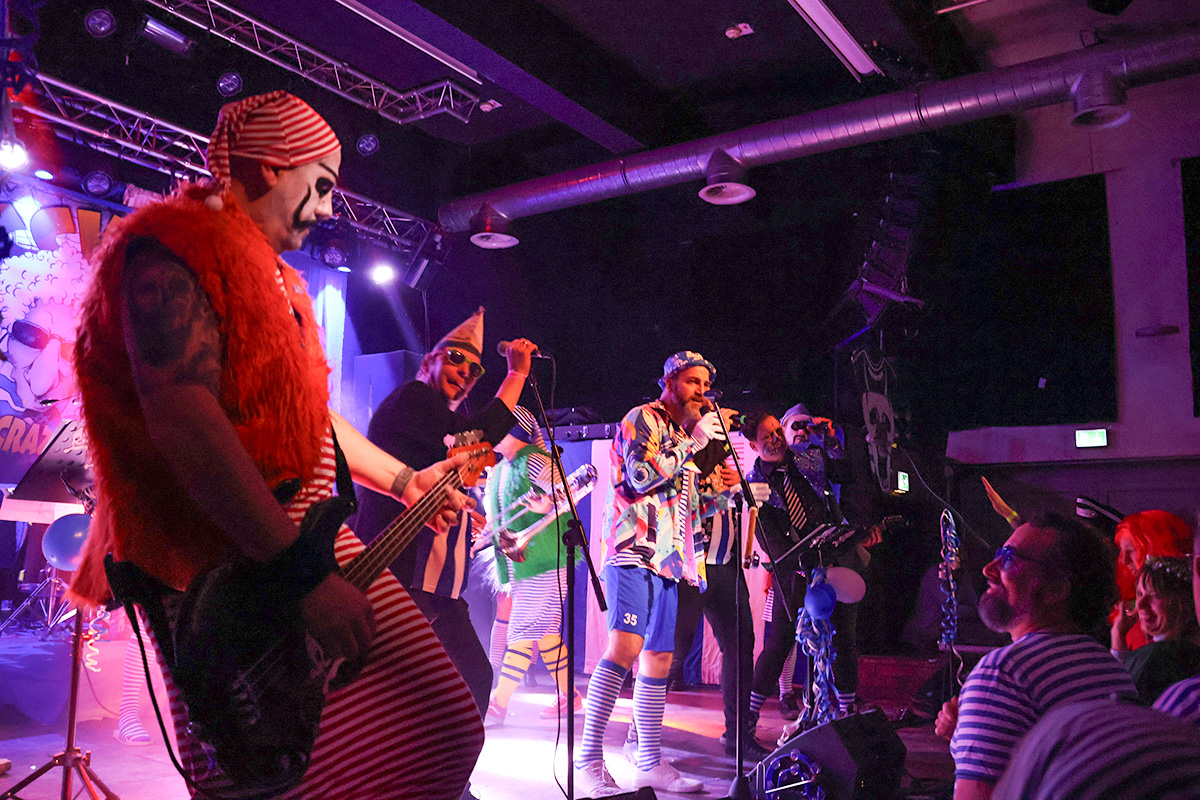 Es hat sich wohl einiges verändert. Nicht nur, dass die Präsidenten Axel Fuchs und Uwe Mock mittlerweile stimmlich von David Ningelgen und Claudio D’Orsaneo unterstützt werden, sondern auch durch steigendes Alter und außer-karnevalistische Ämter hat sich mittlerweile manche (Selbst-)Wahrnehmung verschoben. „Ist schon komisch, wenn ein Bürgermeister und ein Sozialarbeiter in der Band sind und plötzlich nicht mehr singen“, kommentierte so Mock zur Liedzeile „… ist poppen kein Problem“. Und auch überraschend: diesmal gab es im Publikum sogar Platz zum Tanzen.