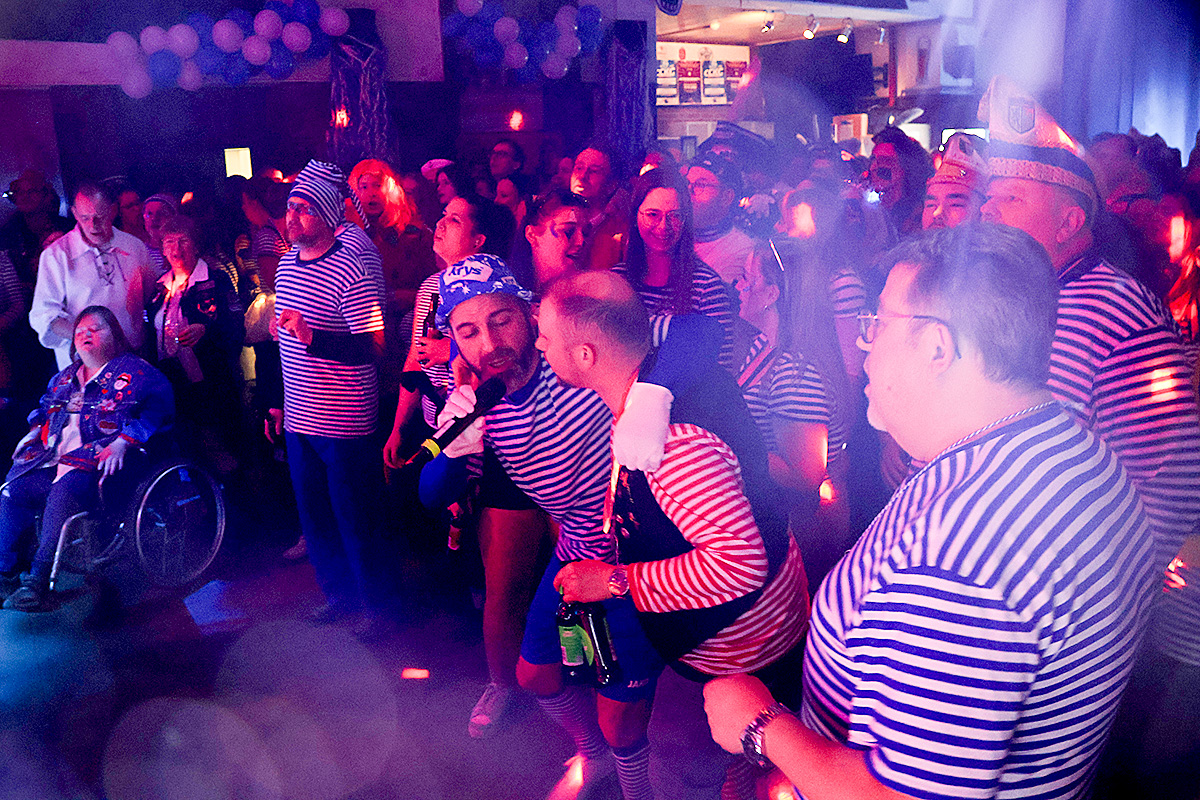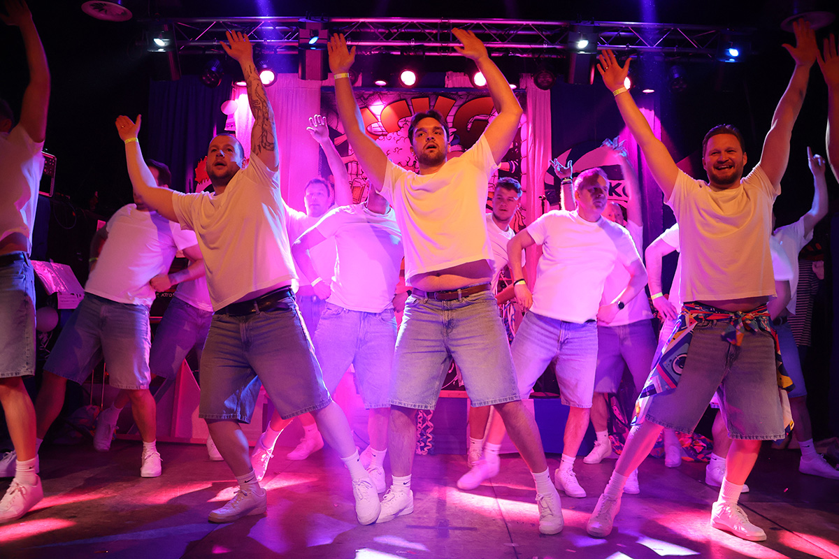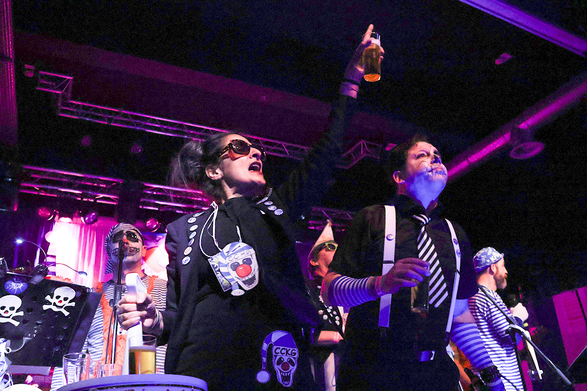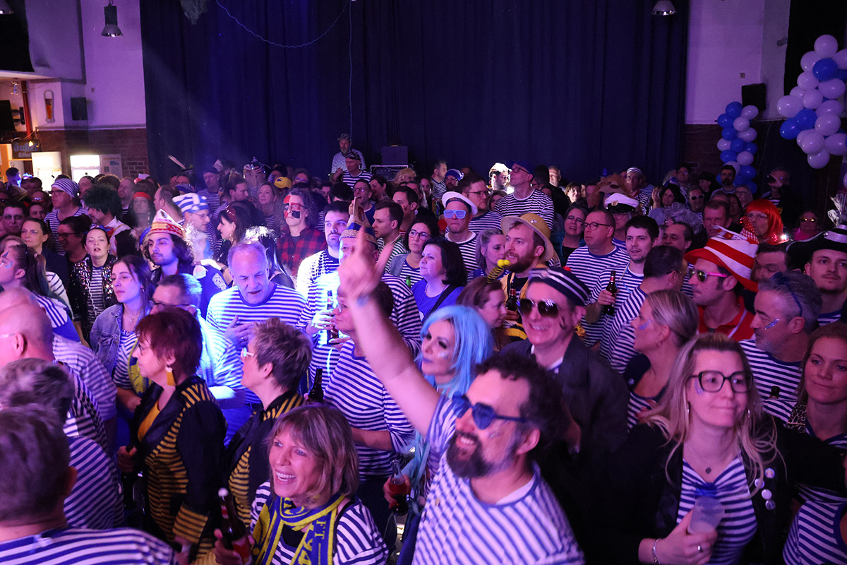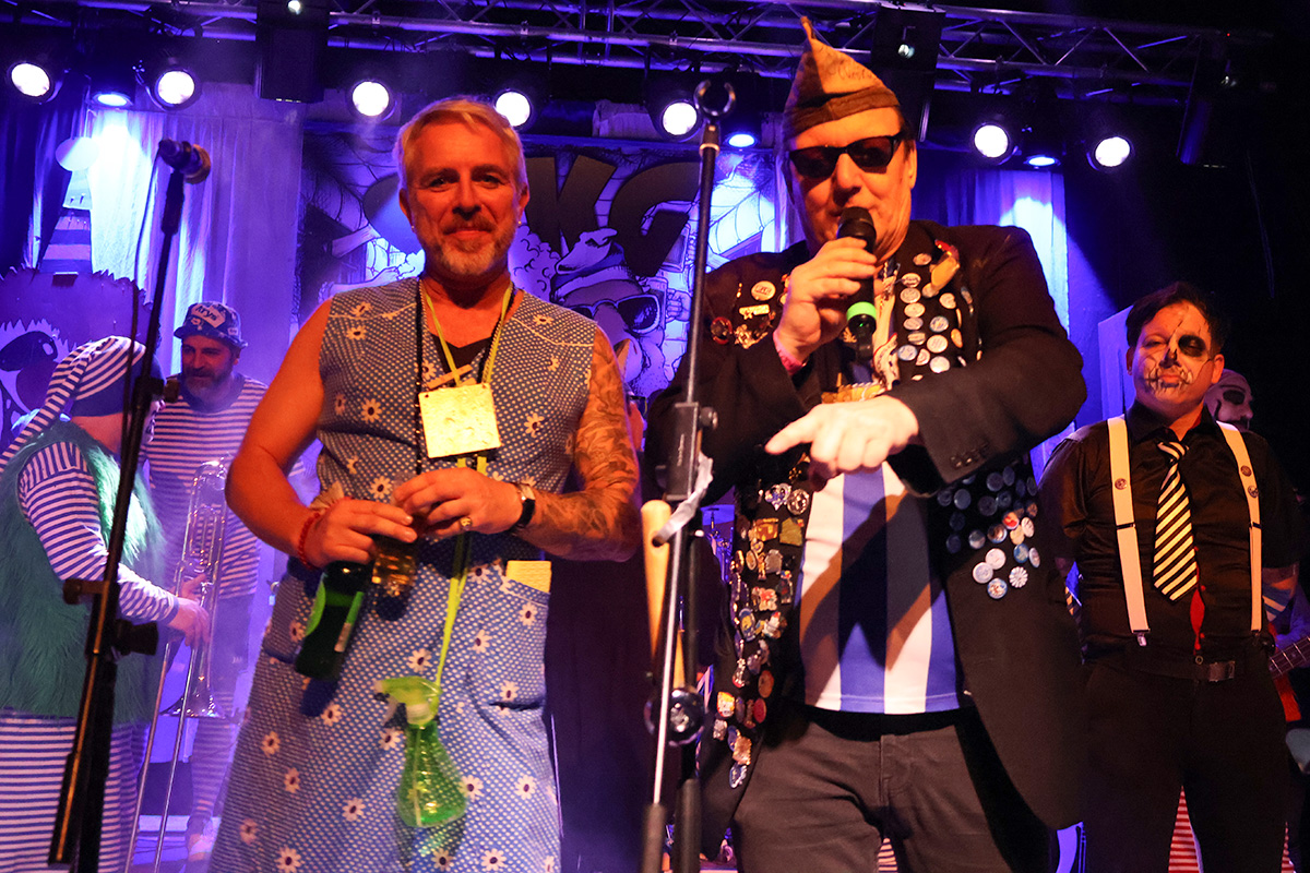 Es hat sich wohl einiges verändert. Nicht nur, dass die Präsidenten Axel Fuchs und Uwe Mock mittlerweile stimmlich von David Ningelgen und Claudio D’Orsaneo unterstützt werden, sondern auch durch steigendes Alter und außer-karnevalistische Ämter hat sich mittlerweile manche (Selbst-)Wahrnehmung verschoben. „Ist schon komisch, wenn ein Bürgermeister und ein Sozialarbeiter in der Band sind und plötzlich nicht mehr singen“, kommentierte so Mock zur Liedzeile „… ist poppen kein Problem“. Und auch überraschend: diesmal gab es im Publikum sogar Platz zum Tanzen.