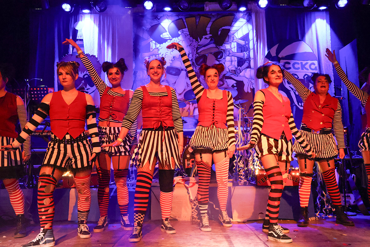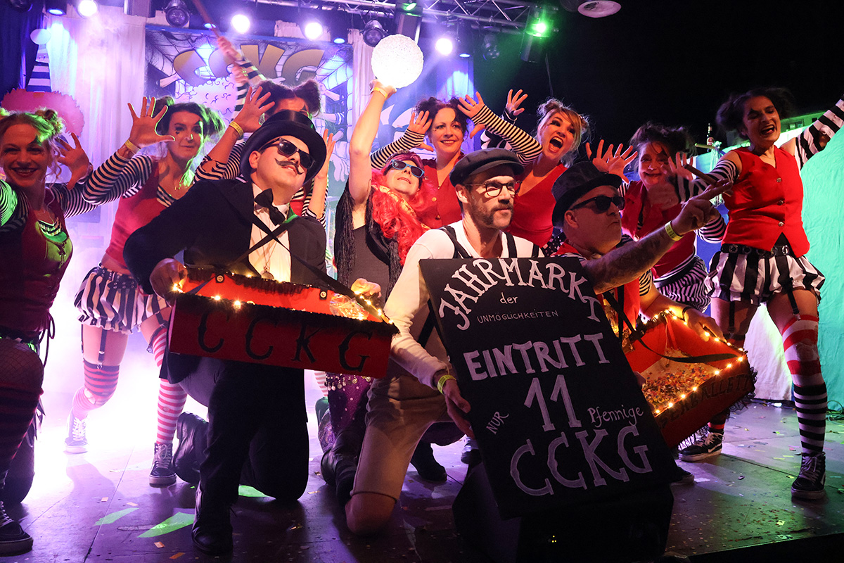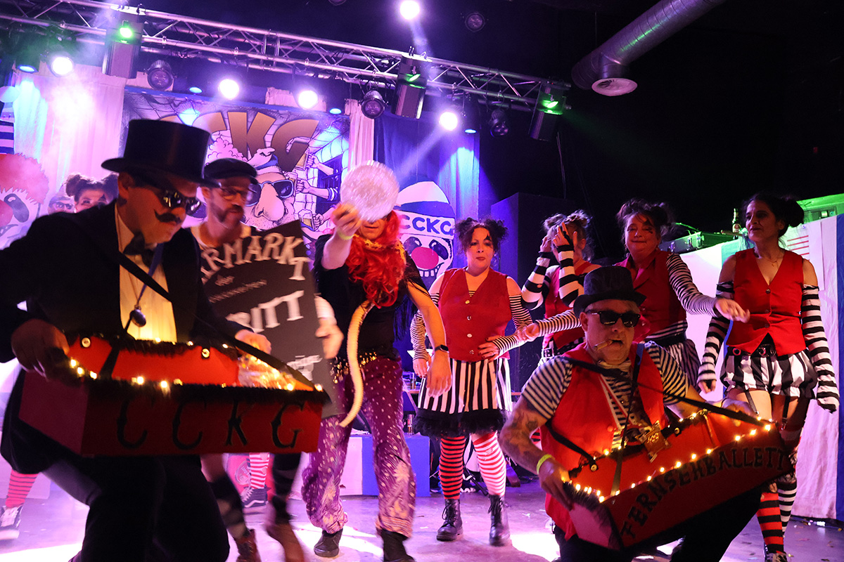 Die CCKG-Tanzparts wurden vom Herrenballett der KG Rurblümchen ergänzt, mit einer Choreographie ganz im Sinne der 90’er Jahre Nostalgie und auch mit Salto-Parts. Dabei gab es bei den Blau-Weißen selbst einige personelle Einbußen: Die Mariechen waren nur zu zweit statt zu dritt und beim Fernsehballett – dieses Jahr mit dem Thema „Jahrmarkt der Unmöglichkeiten“ samt typisch mysteriösen angespielten Clowns- und anderen Figuren – fiel eine Tänzerin aufgrund von Leistenbrüchen aus. Ganz spontan war dieses Jahr der Programmpunkt „Fuss’n’Friends“ (oder diesmal vielmehr „Friend“): Laut Mock war bis mittags nicht klar, ob sie auftreten würden. Quasi das Chaos, das die CCKG seit 1986 ausmacht.