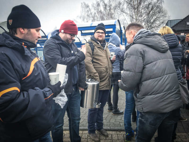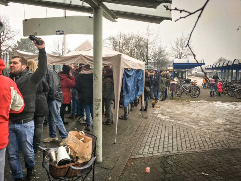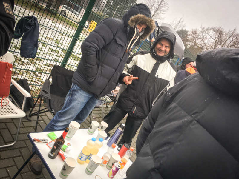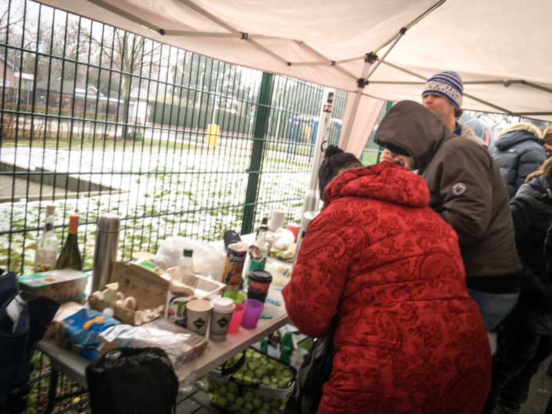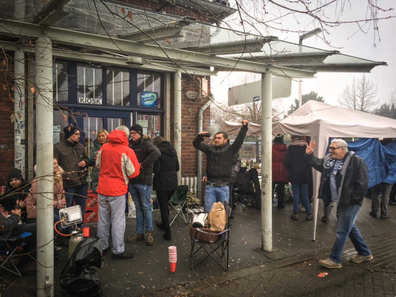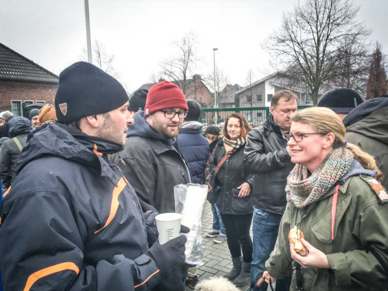 Ob Wärmestrahler oder ganze Pavillons mit Kochstelle. Nichts scheint mehr unmöglich. Und so entdeckt man immer wieder tolle neue Gimmicks, wie z.B. den Dreibein Stehtisch zum Ausklappen. Und auch das Jülicher Deutsche Rote Kreuz war vertreten, um die Wartenden mit Heißgetränken zu versorgen.