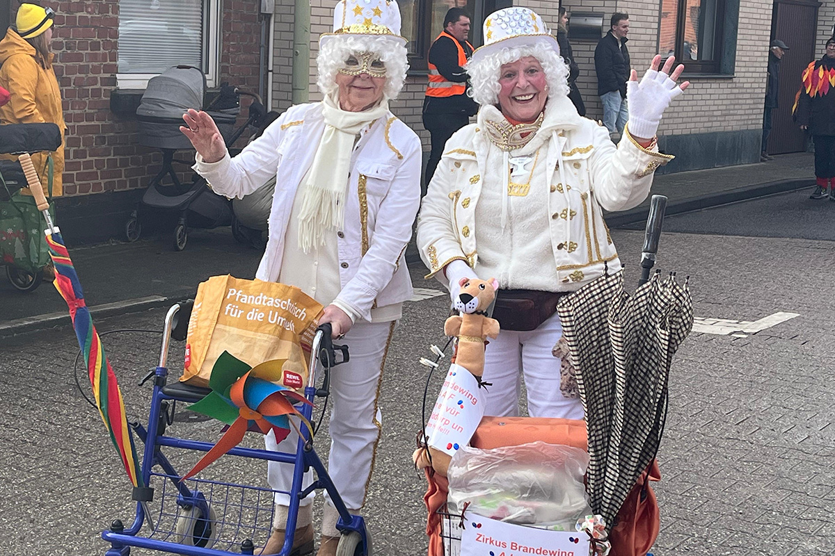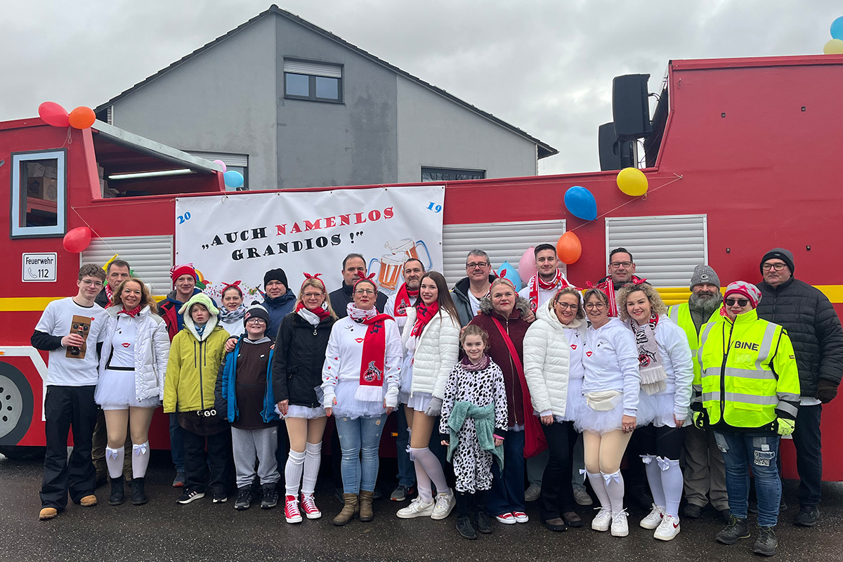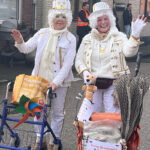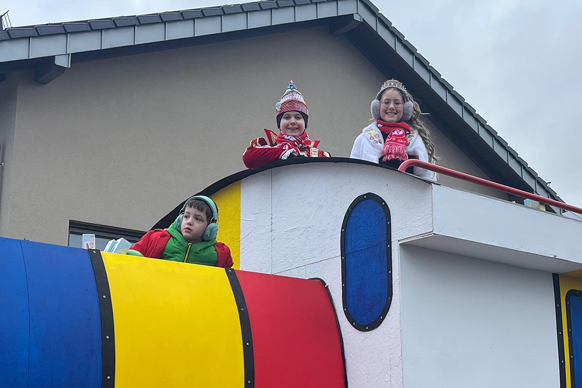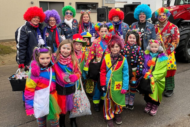 Gleichsam der trüben Kulisse zum Trotze haben sich die Wagen und Fußgruppen im Doppeldorf in besonders farbenfrohe Gewänder geworfen – vor allem die große Gruppe Papageien, die durch den Zoch „flog“, sorgte für ein buntes Spektakel.