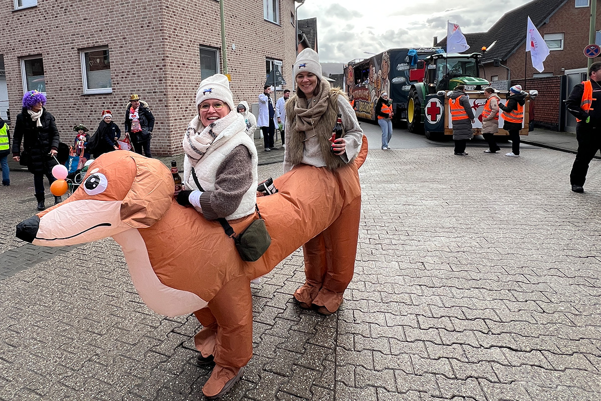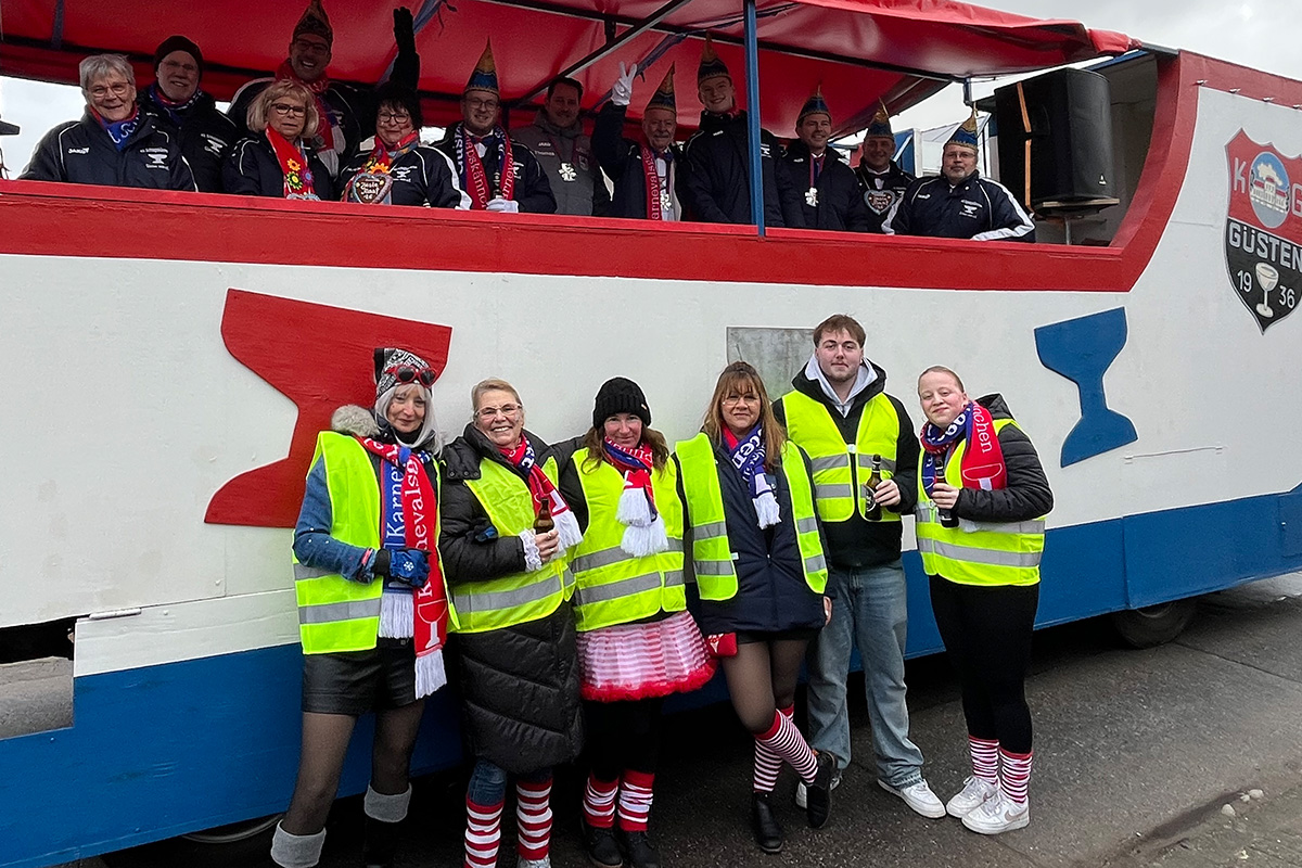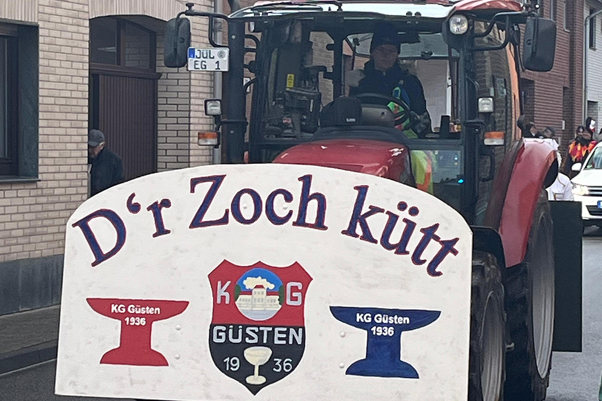 Der Himmel zeigte sich an diesem Rosenmontag nicht gerade von seiner schönsten Seite: Grau und wolkenverhangen blieb es auch über Welldorf und Güsten. Für echte Karnevalisten natürlich kein Hinderungsgrund und so rollte auch hier der Umzug auf Einladung der KG Schnapskännchen durch die Straßen.