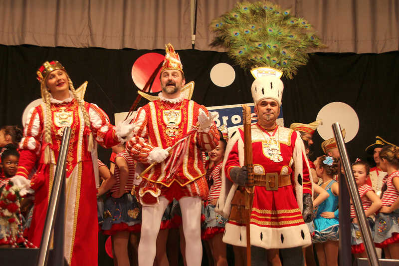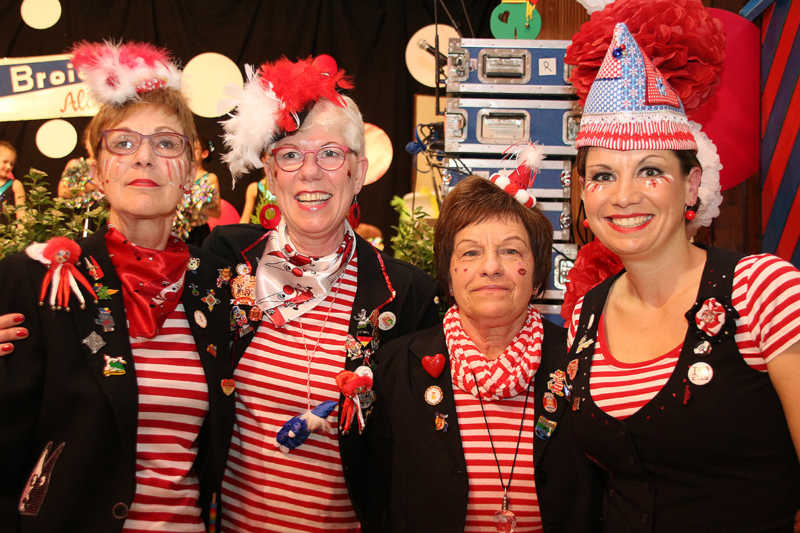 Natürlich können die Damen nicht den ganzen Abend – inklusive Pause immerhin ein fünfstüdiges Programm – nur mit eigenen Kräften stemmen. Das Geheimnis der inzwischen zehnten Sitzung ist das gute Netzwerk, frei nach dem Karnevalshit „Ich kenn ene, der ene kennt, der sät, da jeht noh jet“. Neben der Heimat-KG „Stopp dä Mutz“ und den schon erwähnten „Maiblömche“, die ihre Tanzformationen und Abordnungen entsenden, bauen die KFDlerinnen auf „Beziehungen“, erklärt Sabrina Reif, und zwar „da, wo persönliche Verbindungen da sind, wo man Leute kennt, und sie fragt: ‘Habt Ihr nicht Zeit und Lust zu kommen?’“ „Et Lisbeth“ alias Franz Josef Frings ist beispielsweise Arbeitskollege eines Gremiummitglieds, im Lamersdorfer Männerbalett Cool Men Group tanzt „ein Broicher Jung“ mit; es war auch schon mal ein Dreigestirn aus der Eifel mit „Broicher Prinz“ geladen… „Es bleibt alles in der großen kfd-Familie“, fasst Heide Schiffer es lächelnd zusammen.