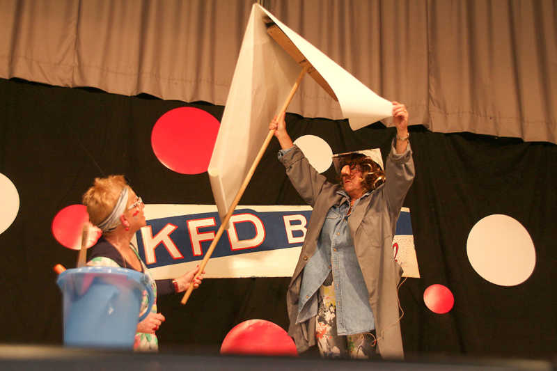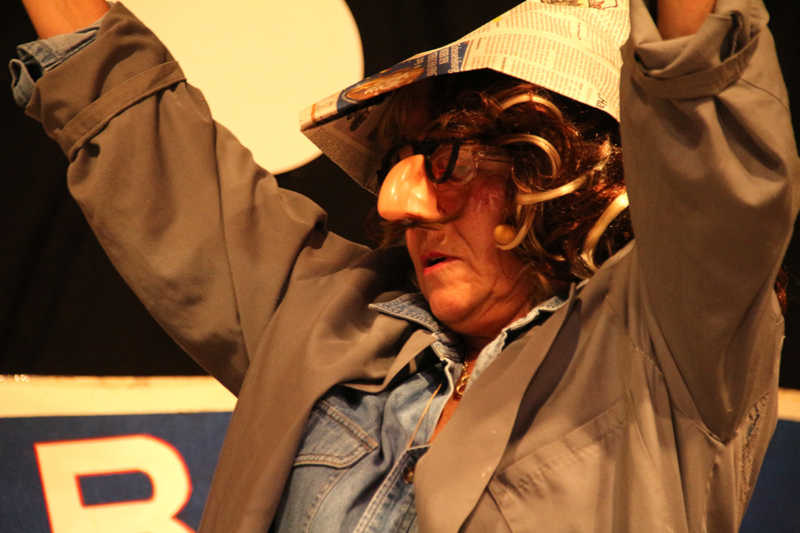 Das Miteinander im Dorf hat auch logistische Vorteile: Auf- und Abbau gehen Hand in Hand, Thekendienste werden übernommen, und schließlich führt ein Sitzungspräsident durch den Abend, während die KFDlerinnen sich um die Geladenen kümmern, sie in Empfang nehmen, Spalier an der Bühne stehen oder mit Dankes-Präsenten für die gelungenen Auftritte versorgen – etwa Schokolädchen für die Kindertanzgruppe. Natürlich nur, wenn sie nicht gerade selbst auf der Bühne stehen wie Angelika Prack als „Erika Berger“ in einem eindeutig-zweideutigen Sketch um ein altes Ehepaar – alias Heidi Schiffer und Nelly Pasch –, die eigentlich nur Fragen zu Renovierungsarbeiten haben. Sandra Becker tanzt nicht nur, sie gehört auch zum „Dorf-Ensemble“, das in Pantomime „En Ovend im Kino“ darstellt und für überraschende Stille, aber auch große Begeisterung im Saal sorgt.