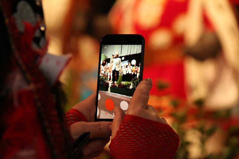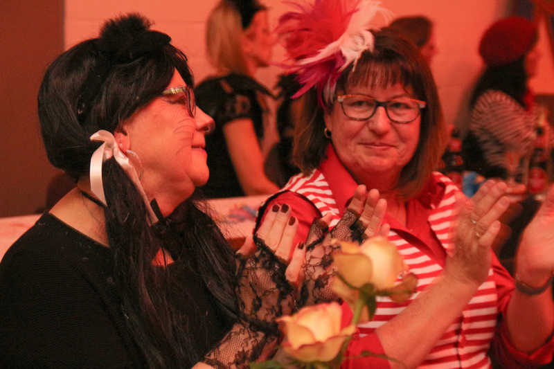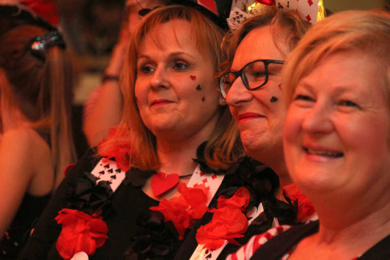 Natürlich hatten sie auch an diesem Abend ihren Auftritt. „Der beste Beweis, dass man auch mit Ü30 eine perfekte Show liefern kann“, liest Sabrina Reif vor, was Heike Dohmen von der befreundeten KG Maiblömche aus dem benachbarten Lich-Steinstraß in den sozialen Netzwerken veröffentlicht hatte. Gelobt wurden Musik, Choreografie und besonders die Kostümauswahl. Damit gäben sich die jungen Damen besonders Mühe, wie Bärbel Oellers als KFD-Gremiumsmitglied, stolze Mutter von Sandra Becker und Schwiegermutter des Sitzungspräsidenten Manfred Becker erzählt. „Der Sitzungspräsident?! Dat ist unser Juwel!“, ruft Heide Schiffer strahlend dazwischen.