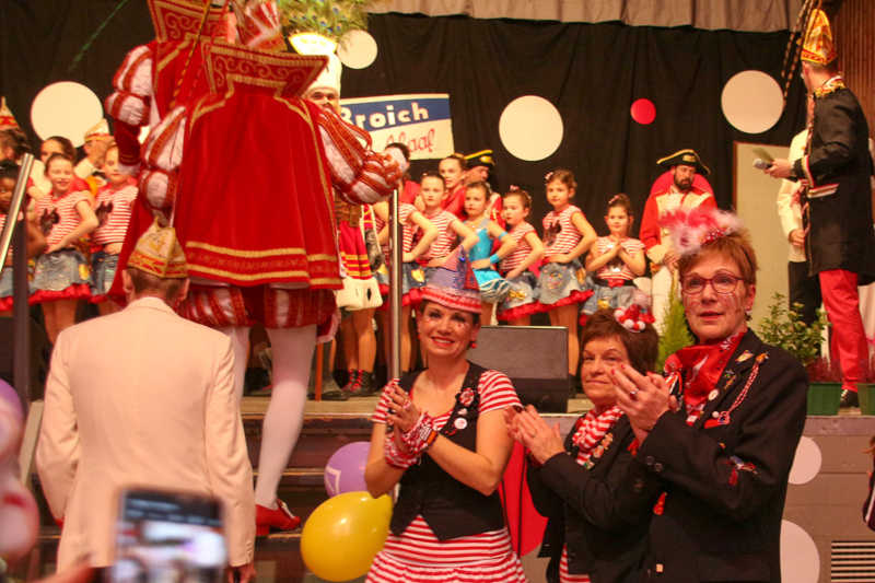 In rot und weiß wogt die Bürgerhalle von Broich. Von den Bändern an den Decken über die Luftballons bis zu den kostümierten Gästen. Wenn die KFD in dem knapp 1100-Seelen-Ort zur Sitzung lädt, dann darf sie mit ausverkauftem Haus rechnen. Das hat einen guten Grund, wie Sabrina Reif weiß: „Die besondere Note ist, dass es so viele Broicher Kräfte sind, die auf der Bühne stehen.“