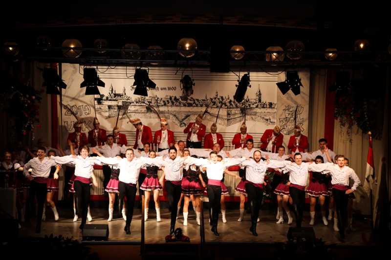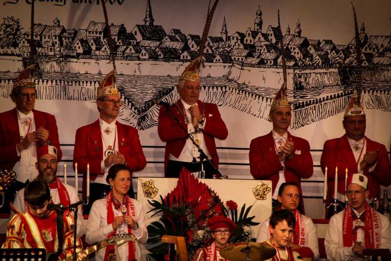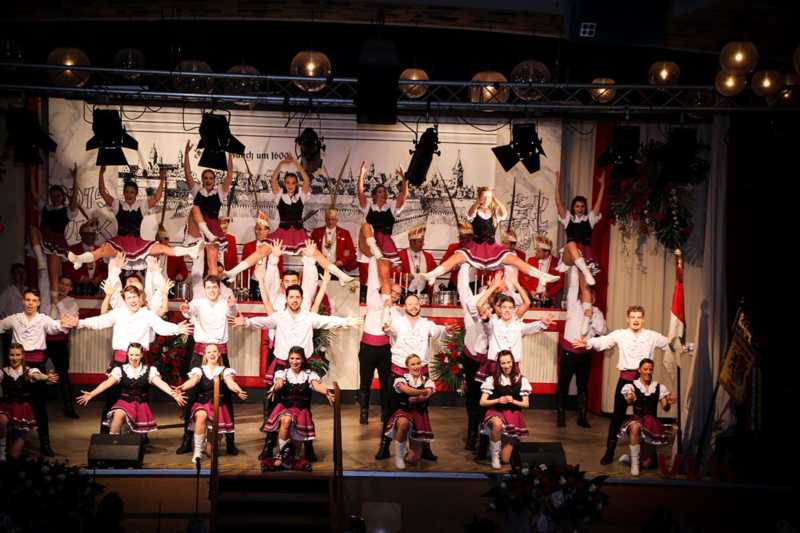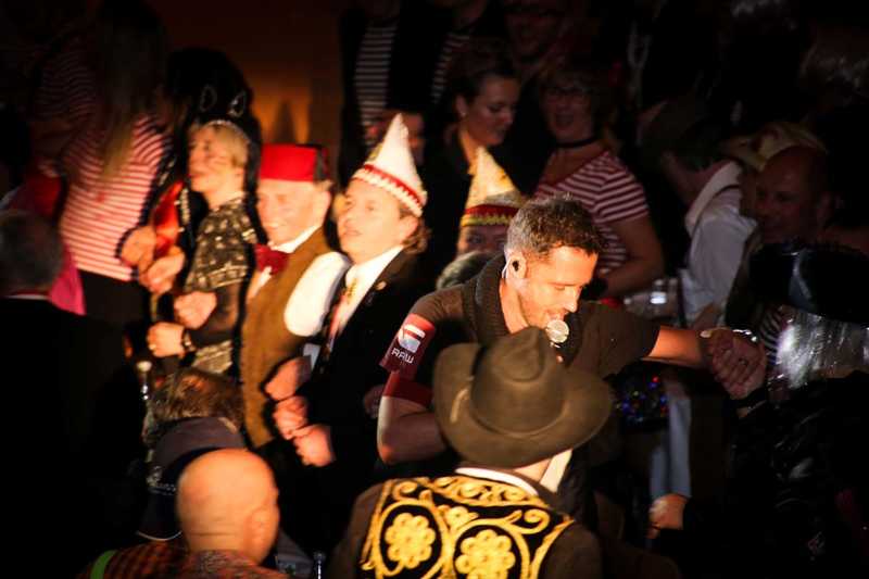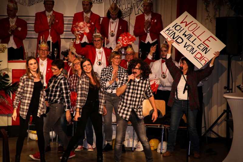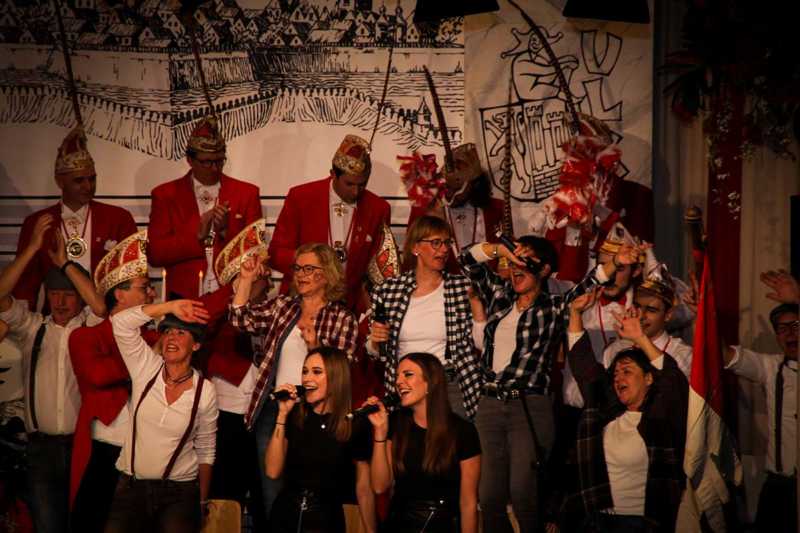 Gemeinsam mit dem gesellschaftseigenen Chor intonierte das Publikum den berühmten „Stammbaum“ der Bläck Fööss. Dabei bot sich ein grandioses Bild: Der Kleine Rat der Gesellschaft Arm in Arm gegenüber hunderter schunkelnder Jecken. Vielleicht die letzte Gänsehaut der dem Ende geweihten Jülicher Stadthalle.