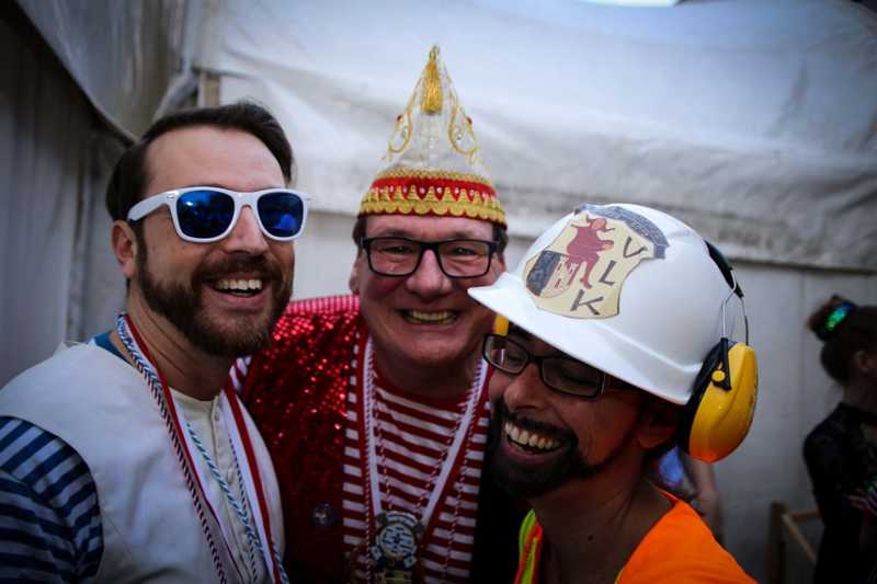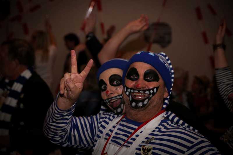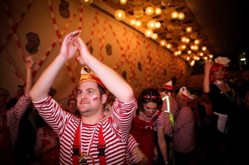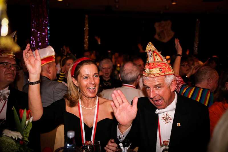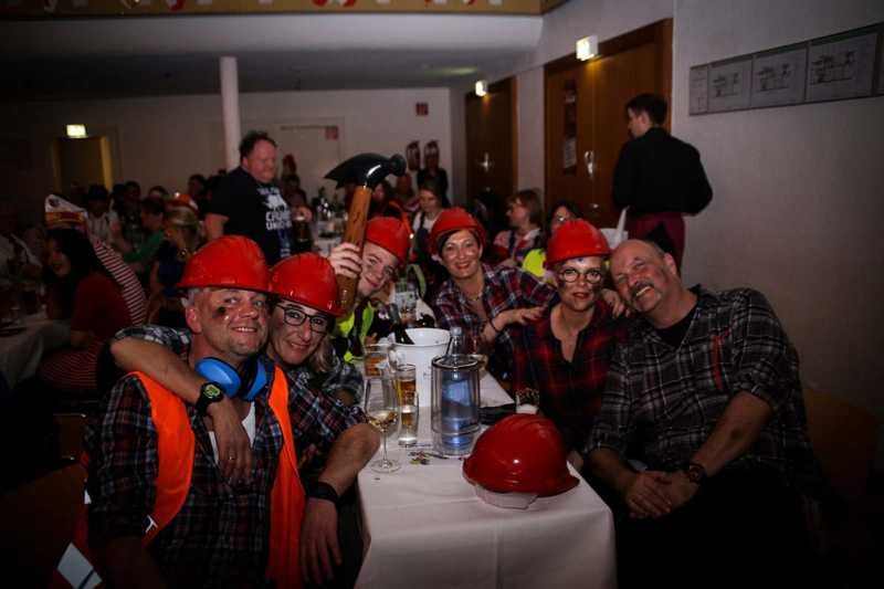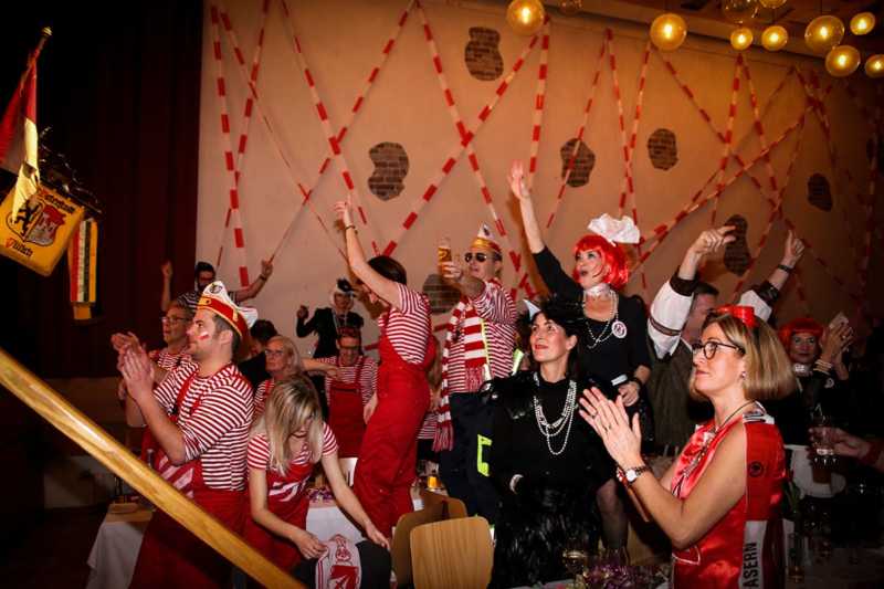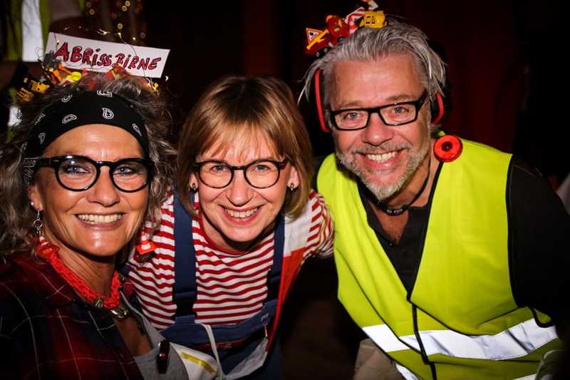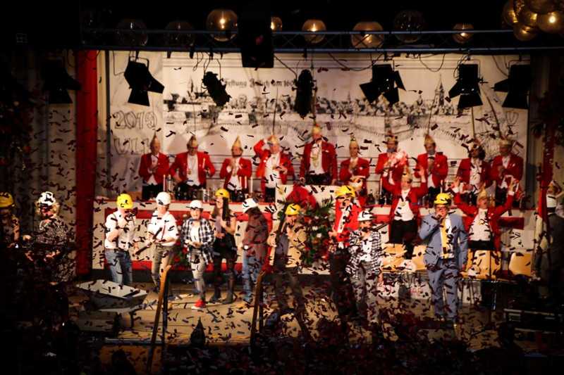 „Einen stimmungsvolleren Abschluss von 49 Ulk-Sitzungen in diesem geschichtsträchtigen Gebäude hätten wir uns nicht wünschen können“, sagte ein sichtlich bewegter Präsident Jörg Bücher. Zahlreiche Jecke hatten sich dem Sessionsmotto der KG verschrieben („Ming Stadthall – Rendezvous mit der Abrissbirne“) und sich als Bauarbeiter, Pleitegeier, Investoren oder Abrissbrinen verkleidet. In dem mit 555 Metern Baustellen-Flatterband geschmückten Festsaal ergab dies ein beeindruckendes Bild.