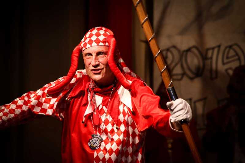 Nach der Pause trompeteten und posaunten sich dann die „Original Eschweiler Fanfaren“ in die Herzen des Publikums. Für die Gruppe war das Gastspiel in Jülich ein ganz Besonderes, war sie in anderer Besetzung Ende der 1970er und Anfang der 80er immer mal wieder die Schlussnummer der Ulk-Sitzungen. Nach den Musikern enterte Jürgen Beckers als „Ne Hausmann“ die Stadthallen-Bühne, ehe schließlich die eingangs erwähnten Kasalla sowie der Ulk-Chor unter der Leitung von Peter Plantikow zum Finale furioso ansetzten.