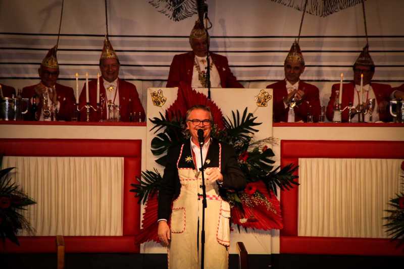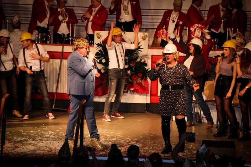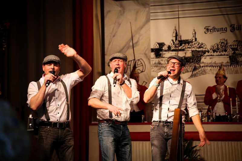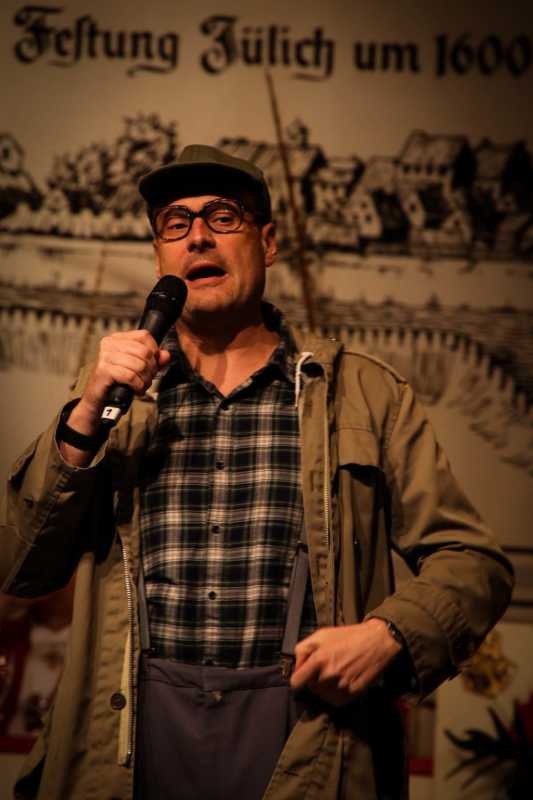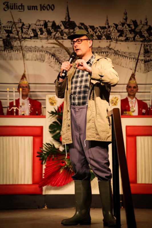 Aber auch sonst bot die von Liteart Dr. Jürgen Elsen detaillieb arrangierte Sitzung einige Höhepunkte: nach dem Jülicher Kinderdreigestirn sorgten „De Räuber“ für erste Schunkel-Arien. Vor allem ihr neuer Sessions-Hit „Immer wenn ich ahn ming Heimat denk“ und der Evergreen „Für die Iwigkeit“ begeisterte die Halle. Anschließend berichtete der stets mit einem Kölsch gewappnete und angeheiterte Sitzungspräsident Volker Weininger über irrwitzige Touren seines Elferrats, ehe die Tanzgruppe Höppemötzcher, der bekannte Kölner Parodist Linus, der den Elferrat als Verstärkung mit auf die Bühne holte, und Redner „Hastenraths Willl“ die erste Hälfte beschlossen.