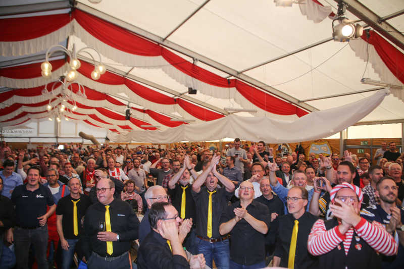 Stimmung unter’m Zeltdach auf der Klause! Zur Herrensitzung hatte die KG Schanzeremmele gerufen und hatten reichlich Männer erreicht, die sich zwischen Musik, Bütt und schwingenden Tanzbeinen die Zeit kurz werden ließen.