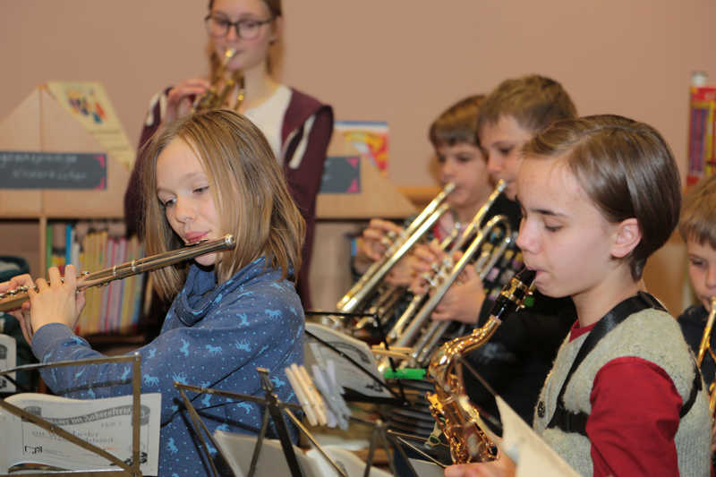 Die Erzählung wurde ergänzt von Weihnachtsliedern, die das junge Blasorchester der Musikschule darbrachte. Das umfangreiche Blasorchester unter Leitung von Jörg Tetzlaff bildete nicht nur den Rahmen der Nikolausfeier, sondern erfreute die zahlreichen Besucher aller Altersstufen mit einem anschließenden Weihnachtskonzert, das großen Anklang fand.