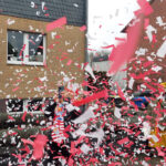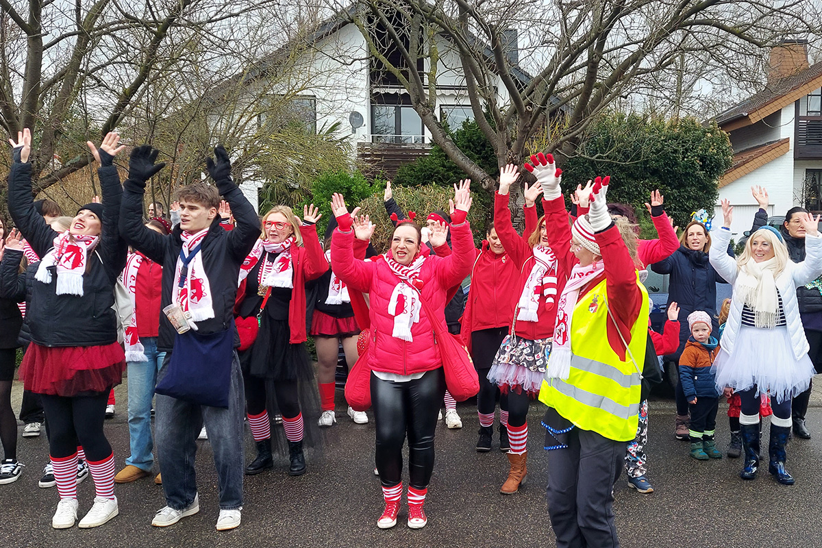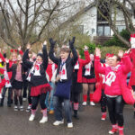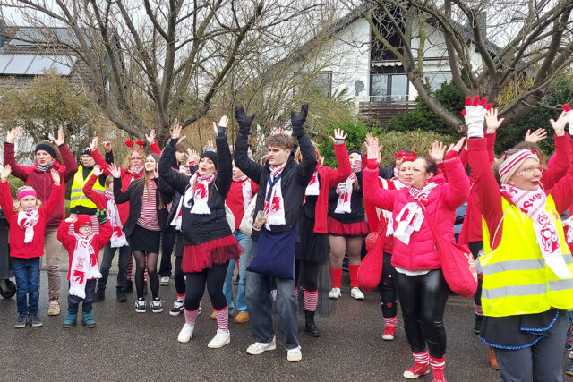 Die Sandhasen tanzen auch in diesem Jahr wieder durchs Dorf, mit dem „Gute Laune“ Lied. Trotz leichter Regenfälle tat es der guten Laune keinen Abbruch und der Zug setzte sich durchs Dörflein weiter in Bewegung und die Zuschauer liefen mit. Somit gab es im Laufe der Zeit immer mehr Zuschauer. Das macht gute Laune.