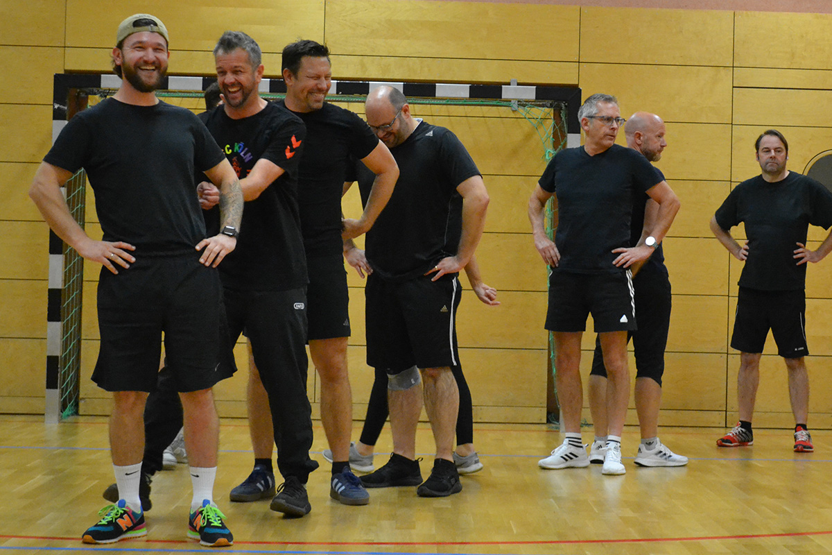 Donnerstagsabend, 19.30 Uhr in der Turnhalle des Jufa-Hotels: Gekühlte Getränke stehen bereit, die Turnschuhe sind geschnürt, die Männer haben sich in die erste Aufstellung sortiert und los geht es. Aber erstmal nur kurz, nach ein paar Schritten vor und zurück, steht die Verwirrung dem einen oder anderen ins Gesicht geschrieben. „Wo steh ich?“ ist erstmal eine der häufigsten Fragen an diesem Abend.