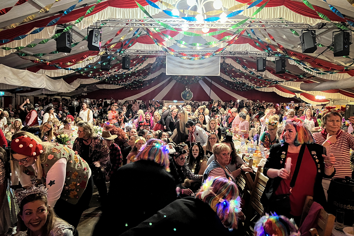 Wenn es am Himmel über Steinstraß plötzlich laut wird, dann ist klar: Die KG Maiblömche hat zur Damensitzung geladen. Unter der närrischen Regentschaft von Maurice Emunds verwandelte sich Steinstraß auch in diesem Jahr wieder in den wohl fröhlichsten Ort zwischen Tanzbein und Tusch.