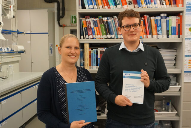 Auch die Förderung wissenschaftlichen Nachwuchses liegt ihr am Herzen. Während ihrer Promotion hat Melanie Welden zwölf Abschlussarbeiten und Praxisprojekte am INB mitbetreut. „Man hat gemerkt, dass es ihr großen Spaß gemacht hat, ihr Wissen an Studierende im Bachelor und Master weiterzugeben“, betont Professor Schöning. Promotionen seien ein „Zugpferd für die Nachwuchsforschung“, so Professor Wagner.