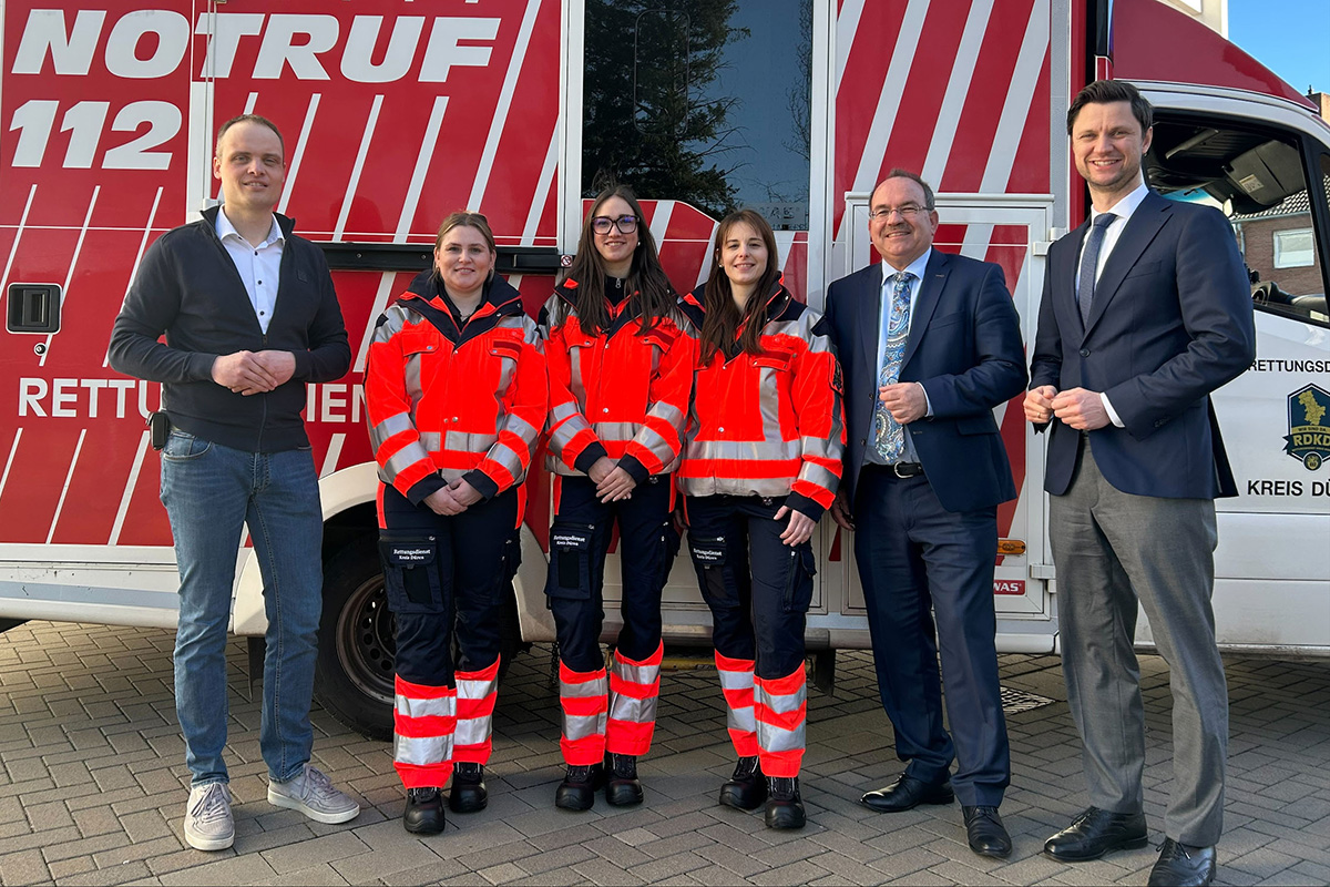 Drei neue Auszubildende haben im März ihren Dienst aufgenommen und werden sich beim Kreis Düren zu Notfallsanitäterinnen ausbilden lassen. Anne Krampe-Peplowski, Katrin Rachner und Laura Hilger lernen in den kommenden drei Jahren in rund 4600 Stunden sowohl in der Theorie als auch in der Praxis alles, was sie brauchen, um Menschenleben zu retten.