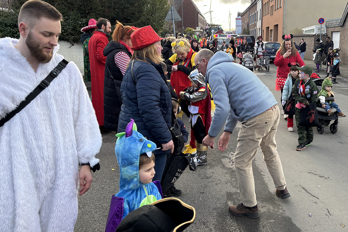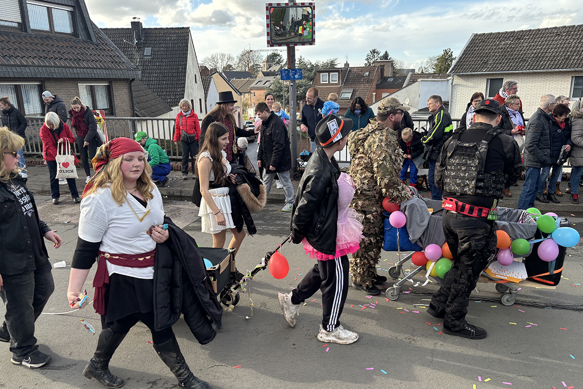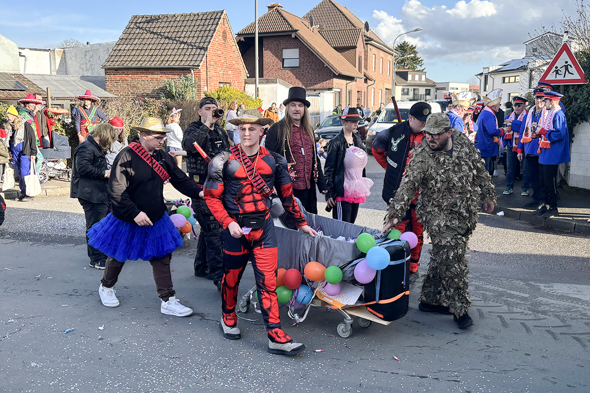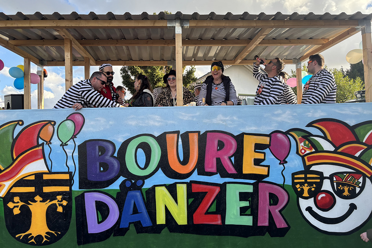 Auch wenn der Bourheimer Zug eher zu den kleineren gehört, gab es in diesem Jahr dennoch einen echten Hingucker: Mit dem Wagen der „Boure Dänzer“, der Herrentanzgruppe aus Bourheim, war ein besonders großer und auffälliger Wagen Teil des Zuges. Nach dem Zug wurde – wie es in Bourheim Tradition ist – noch ausgelassen in der Bürgerhalle weitergefeiert. Bei Musik, Tanz und bester Stimmung.