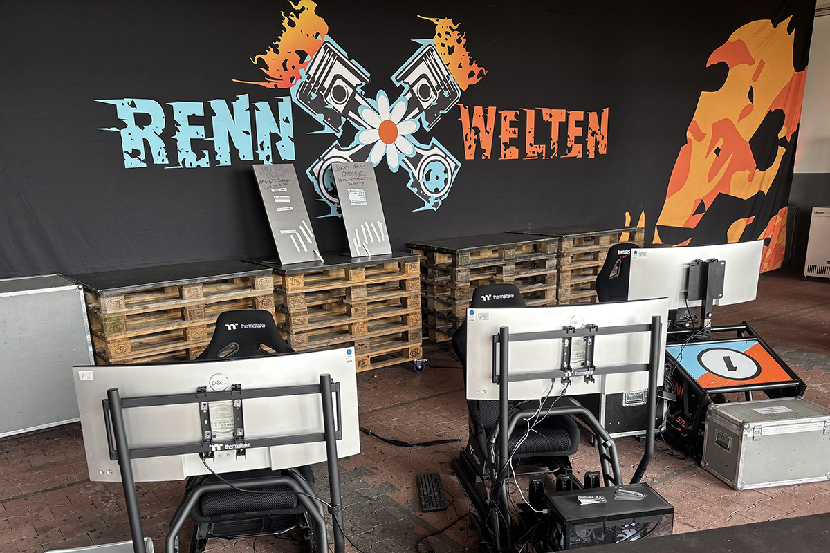Schon beim Betreten der Halle am Mühlenteich wird klar: Hier geht es um mehr als nur Gaming. Zwischen Monitoren, Lenkrädern und Rennsitzen fühlt man sich sofort wie in einer kleinen Motorsport-Welt. Empfangen wurde ich von John Sclear, der bei RennWelten unter anderem für Medien zuständig ist. Er führt mich durch die Location und erklärt die Idee hinter dem Projekt – und die ist größer, als man zunächst denkt. RennWelten versteht sich nicht einfach als Ort mit ein paar Simulatoren, sondern als Community. Laut Sclear handelt es sich sogar um Deutschlands größte Simracing-Community. Eine Szene, die lange als Nische galt, inzwischen aber immer mehr Menschen erreicht – nicht zuletzt durch bessere Technik und die Entwicklungen der letzten Jahre. Was früher eher ein Hobby für wenige war, wird langsam massentauglicher, bleibt aber vor allem eines: ein Treffpunkt für Menschen mit einer gemeinsamen Leidenschaft.