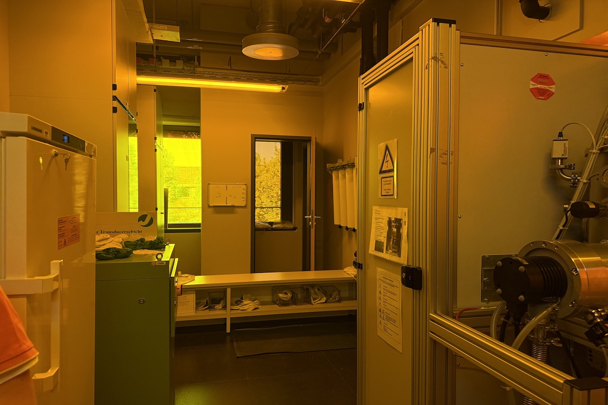 Die sehr spannende Atmosphäre im Reinraum wurde durch die „Sicherheits“-Kleidung noch verstärkt. Im ganzen Raum leuchtete es gelb und leicht orange, da dort auch mit UV-empfindlichen Gegenständen gearbeitet wird. Zudem ist der Raum “undicht”, da Luft von oben eingeschleust und unten wieder rausgeschleust wird. Dies dient dazu, dass der Raum weiter von Partikeln gesäubert wird. Die ganzen Maschinen waren sehr beeindruckend anzuschauen. Die Teilnehmerinnen fühlten sich beinahe wie „eine Person der Wissenschaft“.