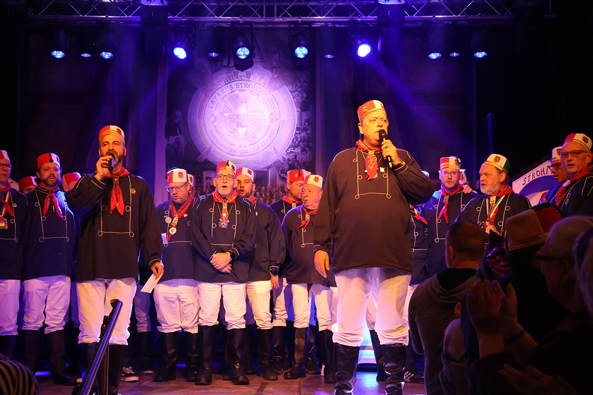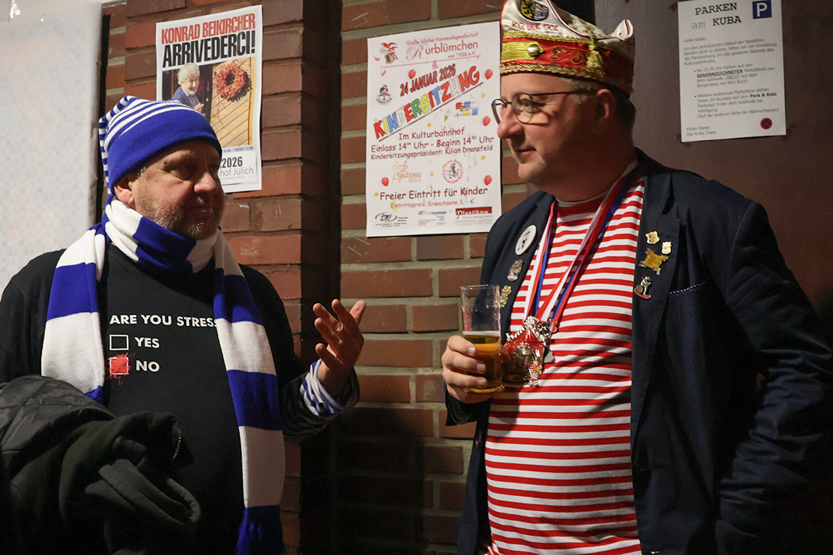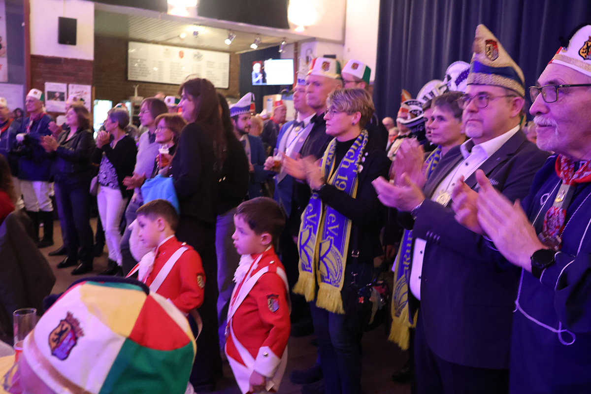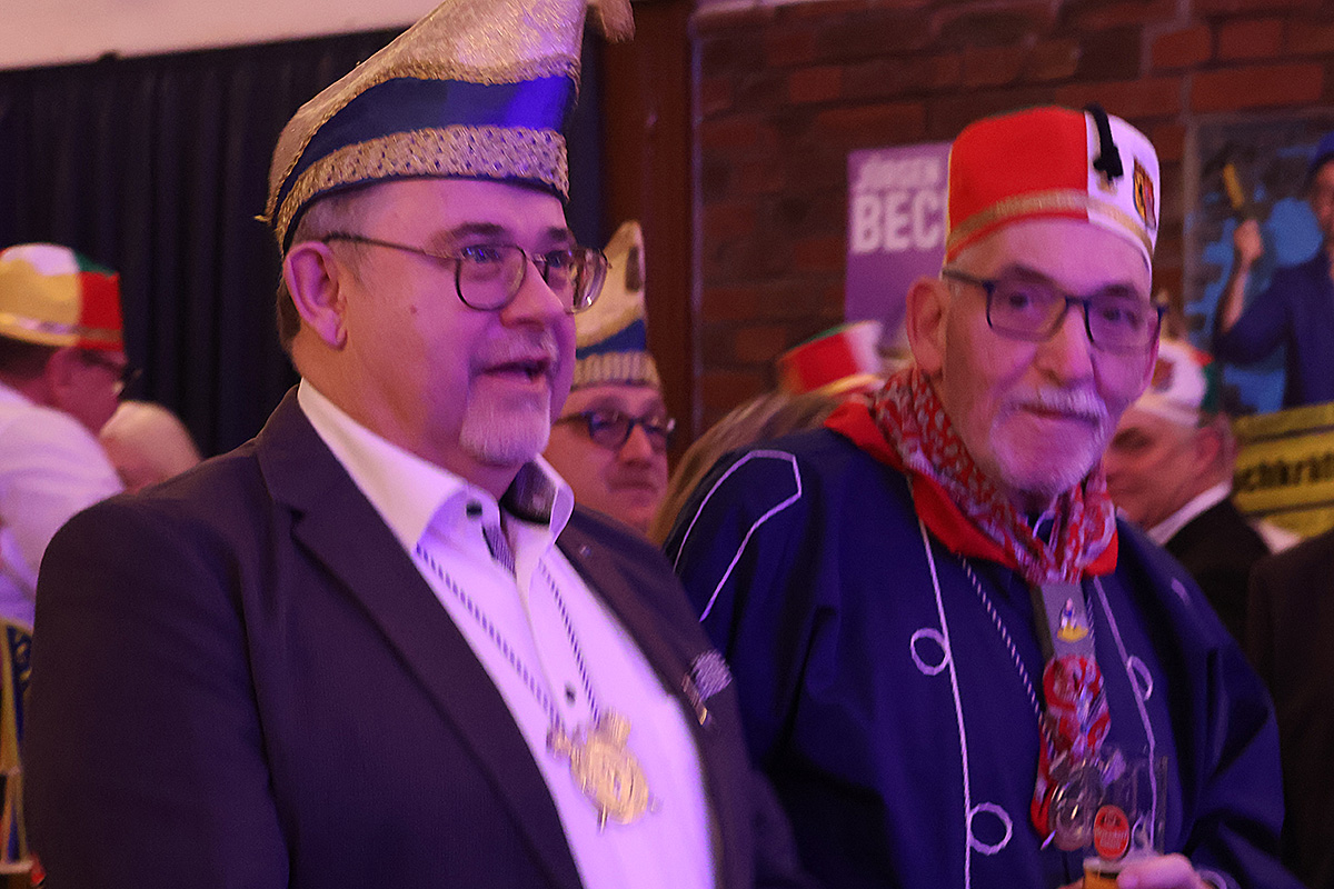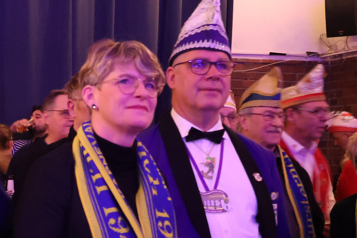 Natürlich sind Familienfeiern ohne Rituale undenkbar. In gekonnter Manier führte deren Präsident David Ningelgen durch den feierlichen Akt, und wenn ihm mal die Worte fehlten soufflierte Senatspräsident Linus Wiederholt. Ohne „Vorsagen“ können nicht nur die aktiven Lazarusbrüder das Nationallied anstimmen, sondern inzwischen auch die Gäste, die kräftig mitsangen. Eine gute Vorbereitung auf den Umzug, der am Veilchendienstag ab 9 Uhr wieder durch die Straßen der Herzogstadt ziehen wird – diesmal auch mit Station im Nordviertel beim Patthühm Jörch – „dä Männ“, wie Präsident Ningelgen freundschaftlich schloss.