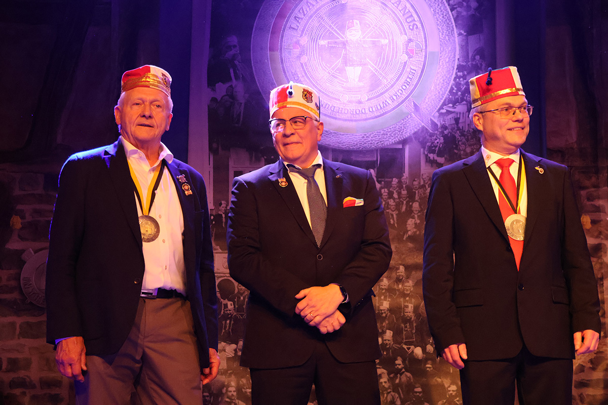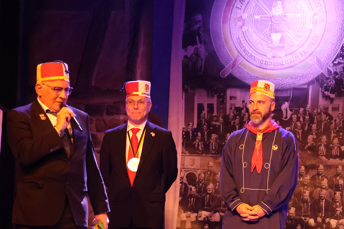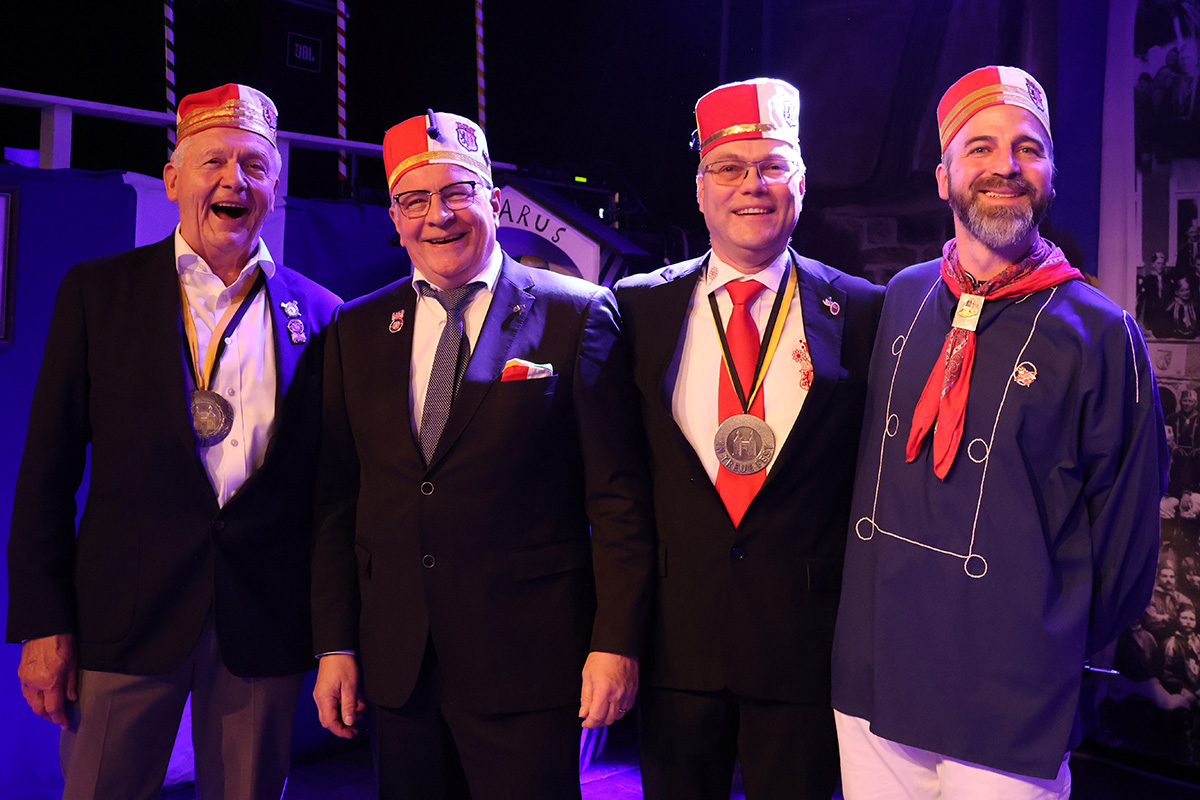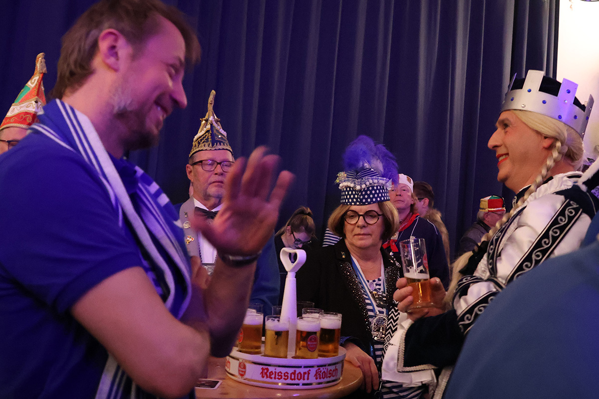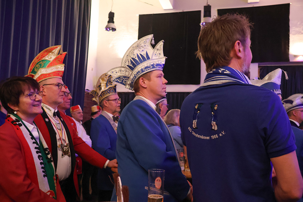 Natürlich sind Familienfeiern ohne Rituale undenkbar. In gekonnter Manier führte deren Präsident David Ningelgen durch den feierlichen Akt, und wenn ihm mal die Worte fehlten soufflierte Senatspräsident Linus Wiederholt. Ohne „Vorsagen“ können nicht nur die aktiven Lazarusbrüder das Nationallied anstimmen, sondern inzwischen auch die Gäste, die kräftig mitsangen. Eine gute Vorbereitung auf den Umzug, der am Veilchendienstag ab 9 Uhr wieder durch die Straßen der Herzogstadt ziehen wird – diesmal auch mit Station im Nordviertel beim Patthühm Jörch – „dä Männ“, wie Präsident Ningelgen freundschaftlich schloss.