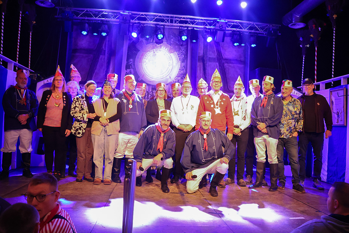 Taufen sind Familienfeste und das gilt auch für die „Doof“ vom Lazarus, zu der alljährlich am 2. Samstag im Januar von der gleichnamigen Historischen Gesellschaft geladen wird. In diesem Jahr galt das insbesondere, denn der Täufer, Jörg Bücher, war der dritte Spross in der Familiengeschichte, dem diese Ehre zuteil wurde. 22 Jahre nach seinem Vater Heino Bücher und fast 50 Jahre nach seinem Schwiegervater Egbert Samans wählte ihn die Historische Gesellschaft Lazarus Strohmanus zum Patthüm und damit Träger des Hexenturmordens 2026. „Ich fühle mich sehr, sehr geehrte“ sagte Taufpate Jörg Bücher, gab der Hoffnung Ausdruck, dass er dem Amt gewachsen sein werde und man im Nachhinein nicht sagen müsse „er hat sich stets bemüht“.